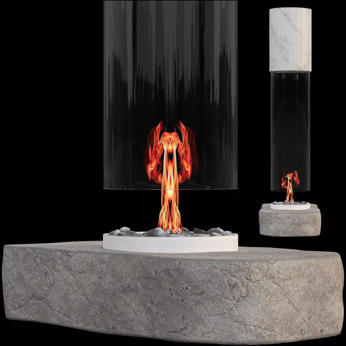 Add warmth and contemporary elegance to your digital interiors with this Glassy Fireplace 3D model. This modern fireplace features a sleek, transparent glass chimney and a natural stone base, creating a striking focal point for any virtual living space, hotel lobby, or luxury interior. The realistic flame effect enhances the ambiance, making it perfect for architects, interior designers, and digital creators.Key Features: