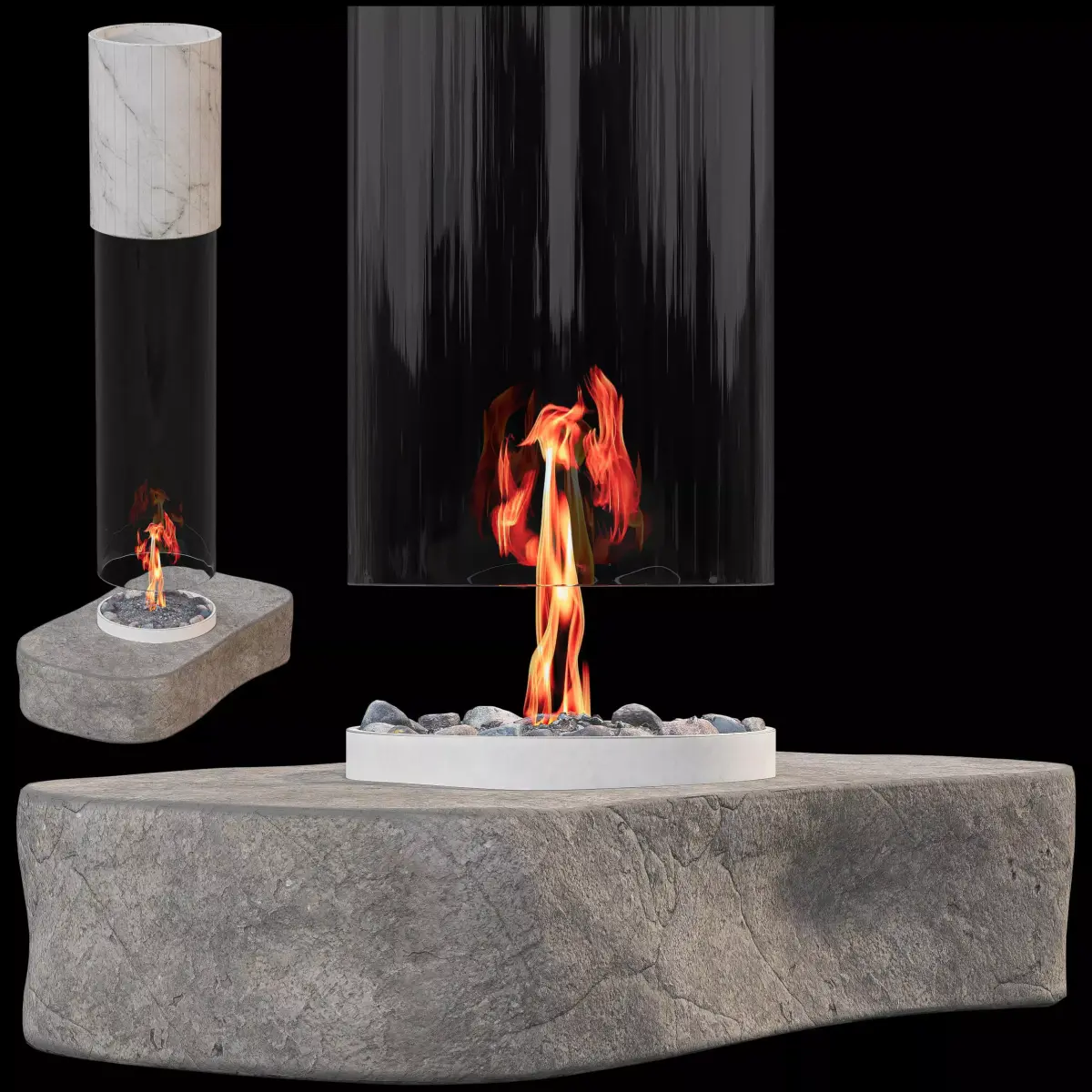 Modern Design: The fireplace showcases a minimalist glass chimney paired with a rugged stone base, blending natural and contemporary elements.Realistic Flame Effect: The dynamic flame adds life and warmth to your scenes, creating a cozy atmosphere.High-Quality Detailing: Meticulously crafted to ensure realistic textures and refined details, from the stone surface to the glass and fire.Versatile Use: Ideal for virtual home designs, architectural visualizations, interior decor scenes, or as a centerpiece in 3D renderings.Optimized for Rendering: Compatible with Blender, Unreal Engine, Unity, and 3ds Max for seamless integration into your workflow.