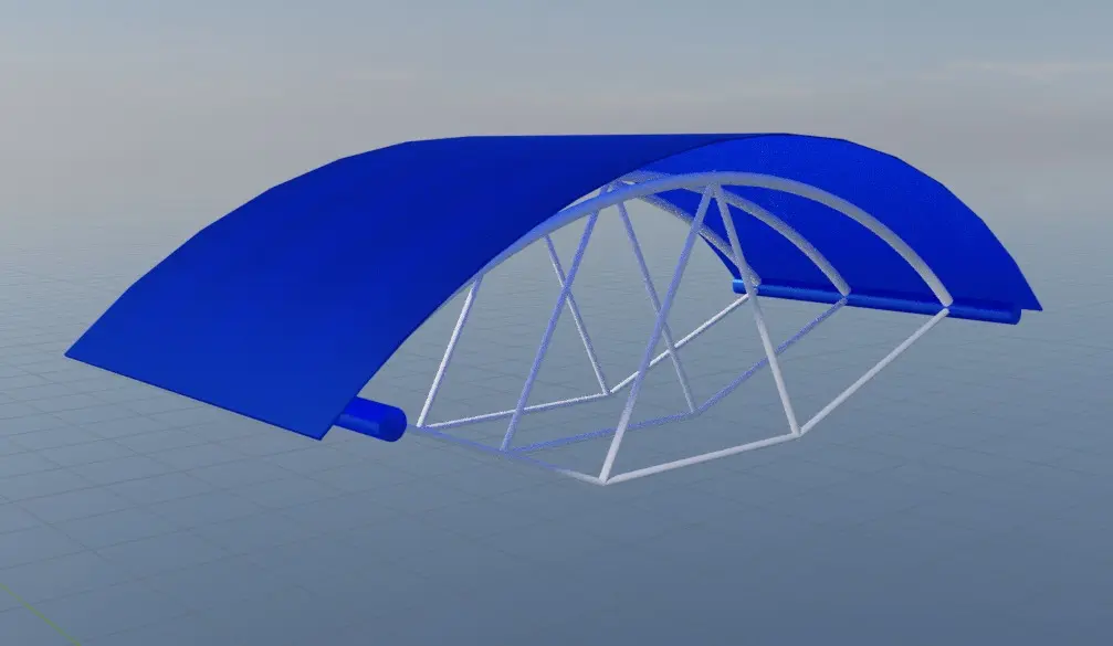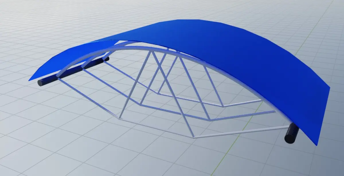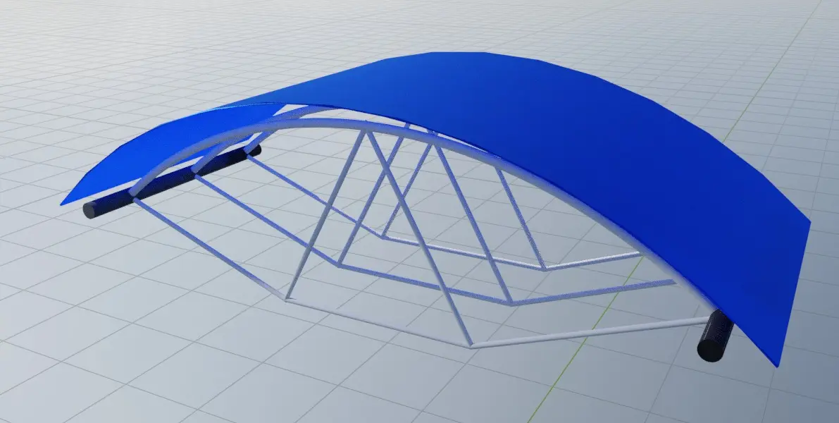 Curved galzed canopy with steel frame. Ideal for entrance of commercial buildings
