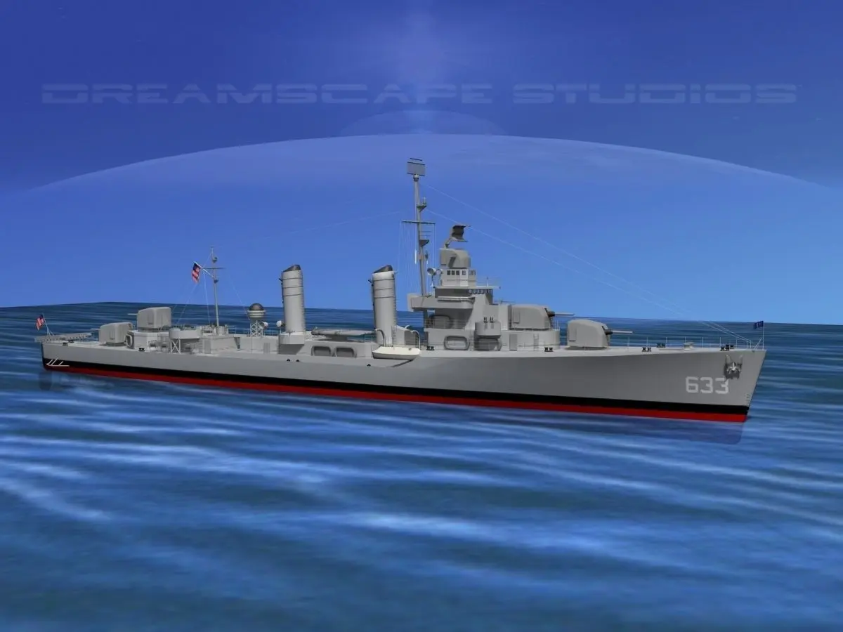 The model is very detailed. It includes many animateable features: guns and turrets, anti-aircraft borfors, 20mm cannons, davits, whaleboats, hatches, propellers and rudders. Flags can be easily added and animated. Anchors can be animated with the addition of anchor chains. Handrails, ladders and hatches appear through the model. Life Rafts are included through the model and can be launched. This model was built with textures and is available in multiple formats. These models render very well and look very realistic using good animation and rendering technique.