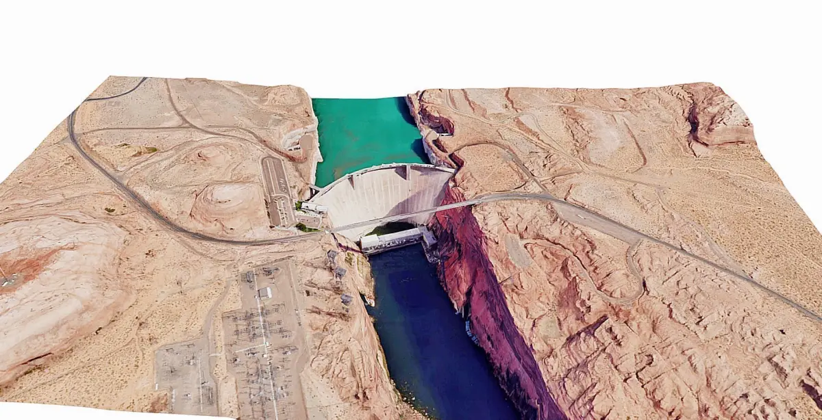 Glen Canyon Dam is a concrete arch-gravity dam on the Colorado River in northern Arizona, United States, near the town of Page. The 710-foot (220 m) high dam was built by the U.S. Bureau of Reclamation (USBR) from 1956 to 1966 and forms Lake Powell, one of the largest man-made reservoirs in the U.S. with a capacity of 27 million acre-feet (33 km3).[3] The dam is named for Glen Canyon, a series of deep sandstone gorges now flooded by the reservoir; Lake Powell is named for John Wesley Powell, who in 1869 led the first expedition to traverse the Colorado’s Grand Canyon by boat. https://en.wikipedia.org/wiki/Glen_Canyon_Dam