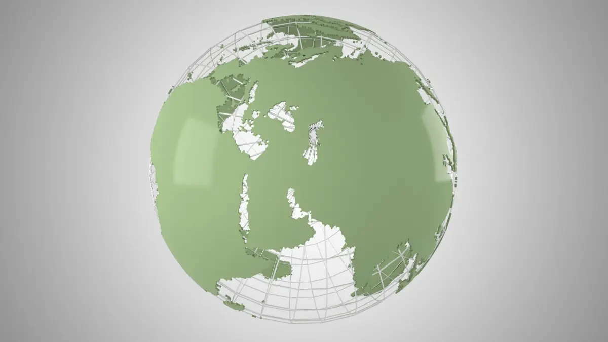Highly detailed Model of the Earth as a Globe with grid. The World Globe Wire 3D Model is a detailed representation of Earth. 3D model Globe Solid Color Turfe Green.
