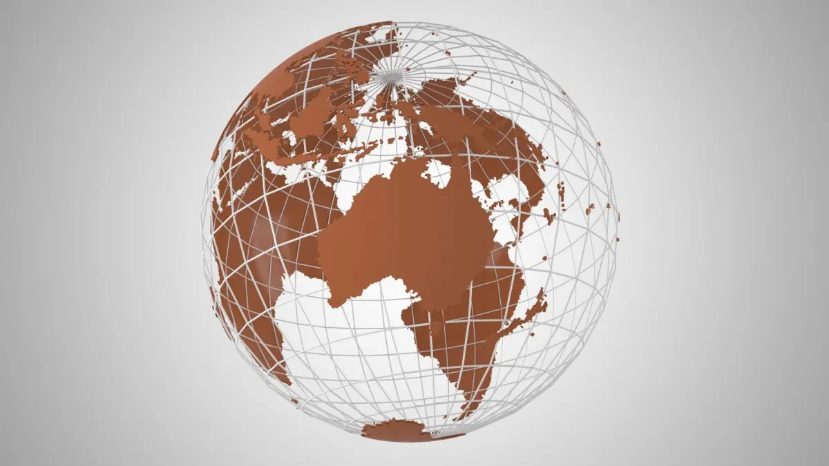 Highly detailed Model of the Earth as a Globe with grid. The World Globe Wire 3D Model is a detailed representation of Earth. 3D model Globe Solid Color Brown.