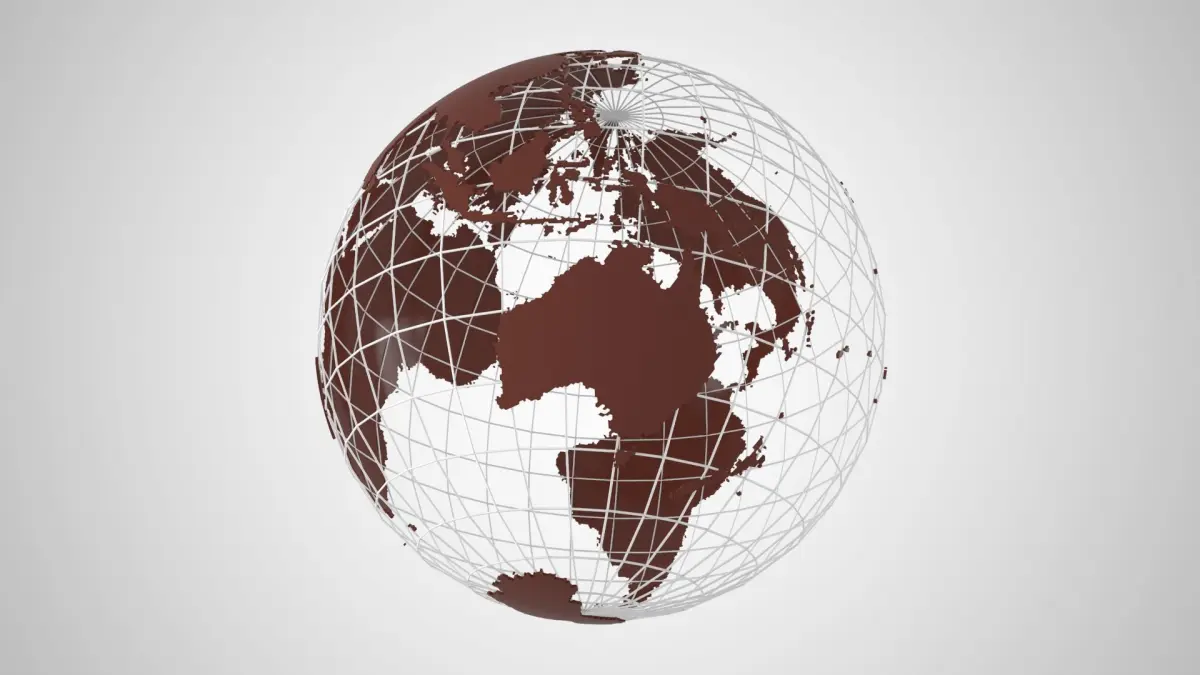 Highly detailed Model of the Earth as a Globe with grid. The World Globe Wire 3D Model is a detailed representation of Earth. 3D model Globe Solid Color Brownie.