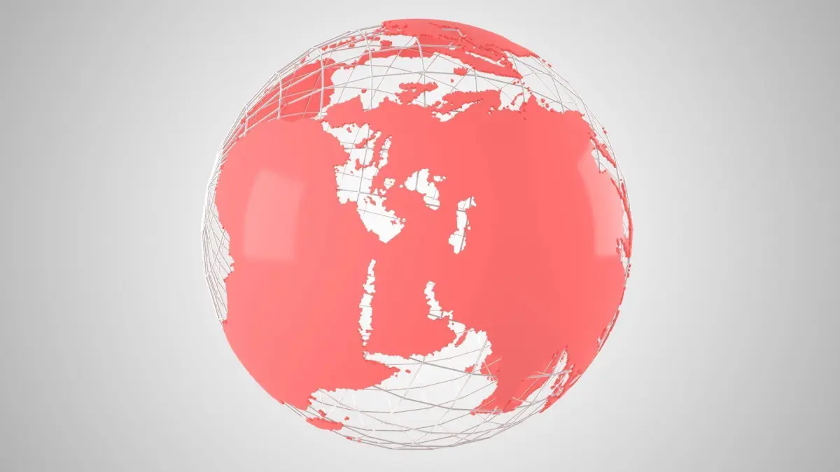 Highly detailed Model of the Earth as a Globe with grid. The World Globe Wire 3D Model is a detailed representation of Earth. 3D model Globe Solid Color Light Red.