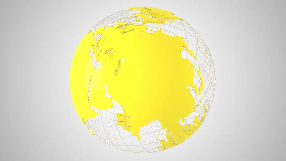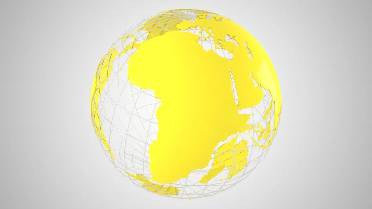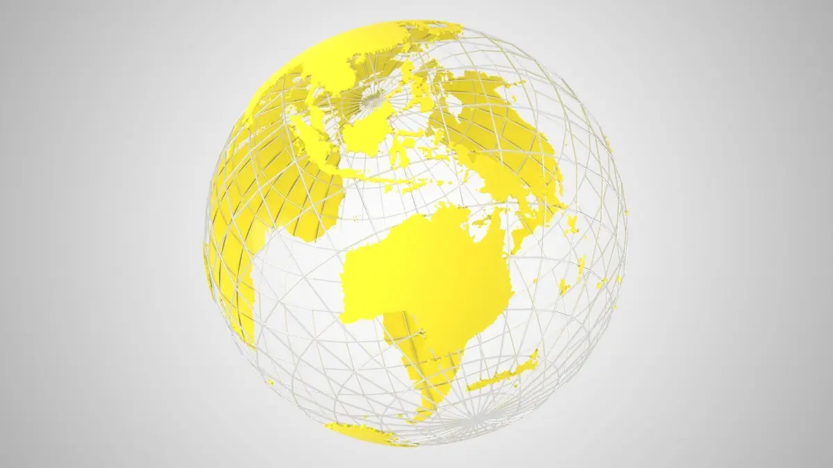 Highly detailed Model of the Earth as a Globe with grid. The World Globe Wire 3D Model is a detailed representation of Earth. 3D model Globe Solid Color Light Yellow.