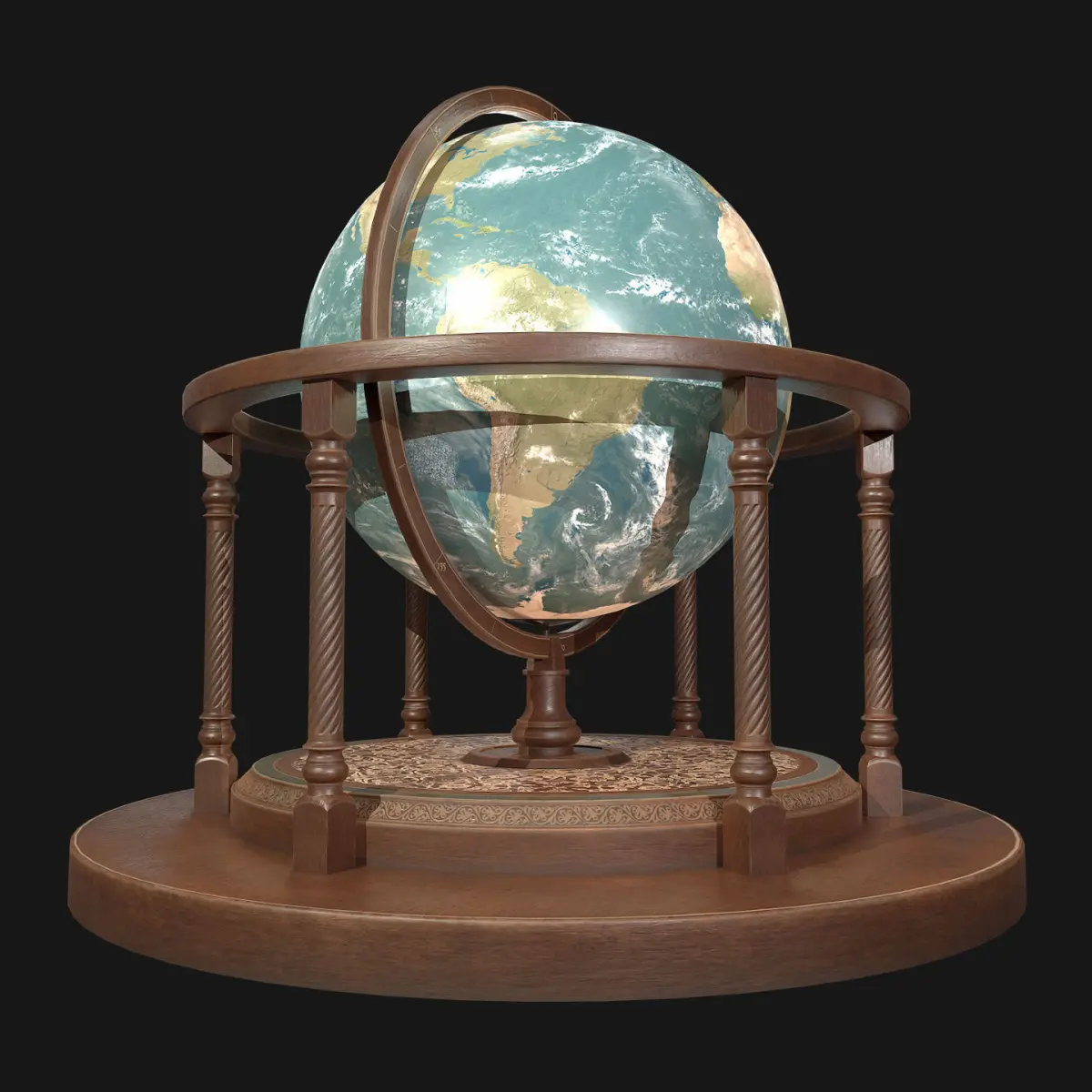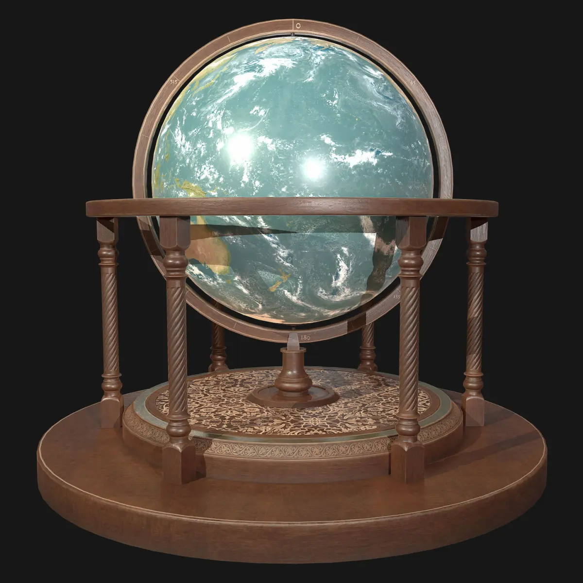 Big globe. Gameready lowpoly model(20694 tris). 4096x4096 texture in .png. Basecolor, Normal,Metallic,Roughness, AO. File Formats : .FBX .OBJ .3DS .MA Render - Marmoset Toolbag.