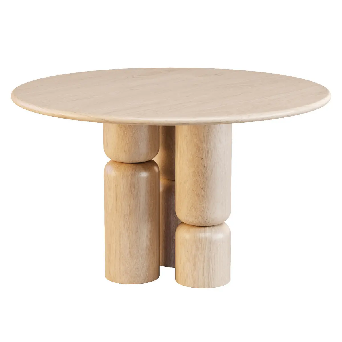 - Elevate your dining area with the Hayes Dining Table in Light Oak. Featuring three solid oak hourglass shaped legs supporting a oak veneer round top with a bullnose edge, it provides a sleek and sophisticated look. The combination of solid oak and oak veneer construction ensures durability and style. Perfect for contemporary interiors, it combines elegance with practical functionality.
