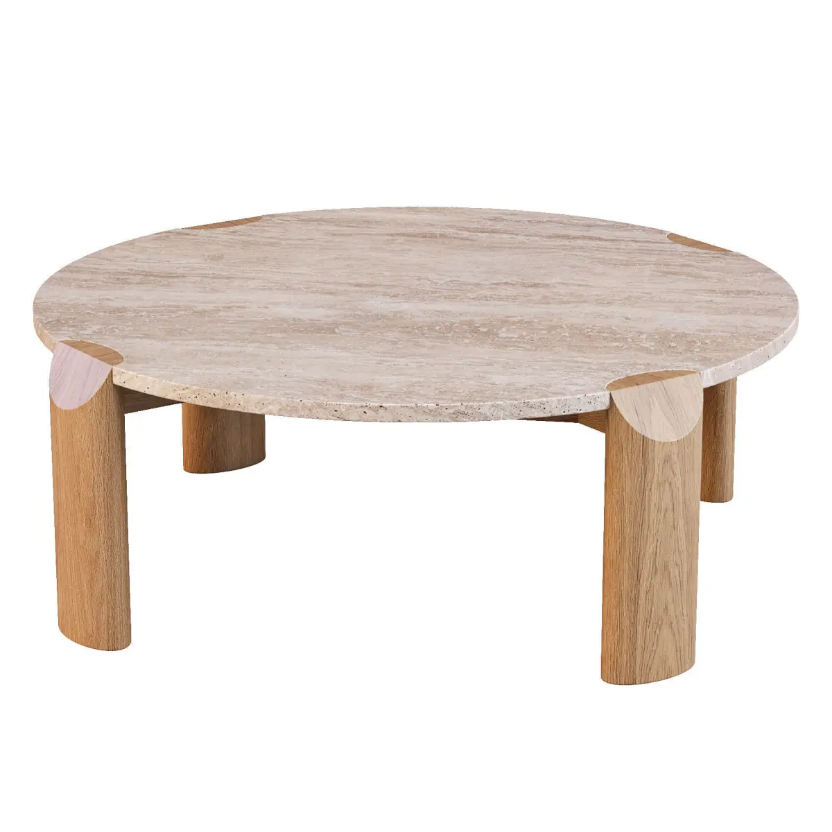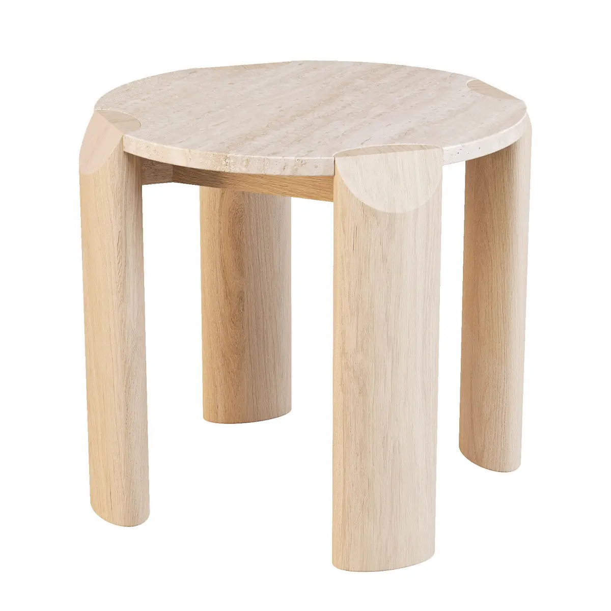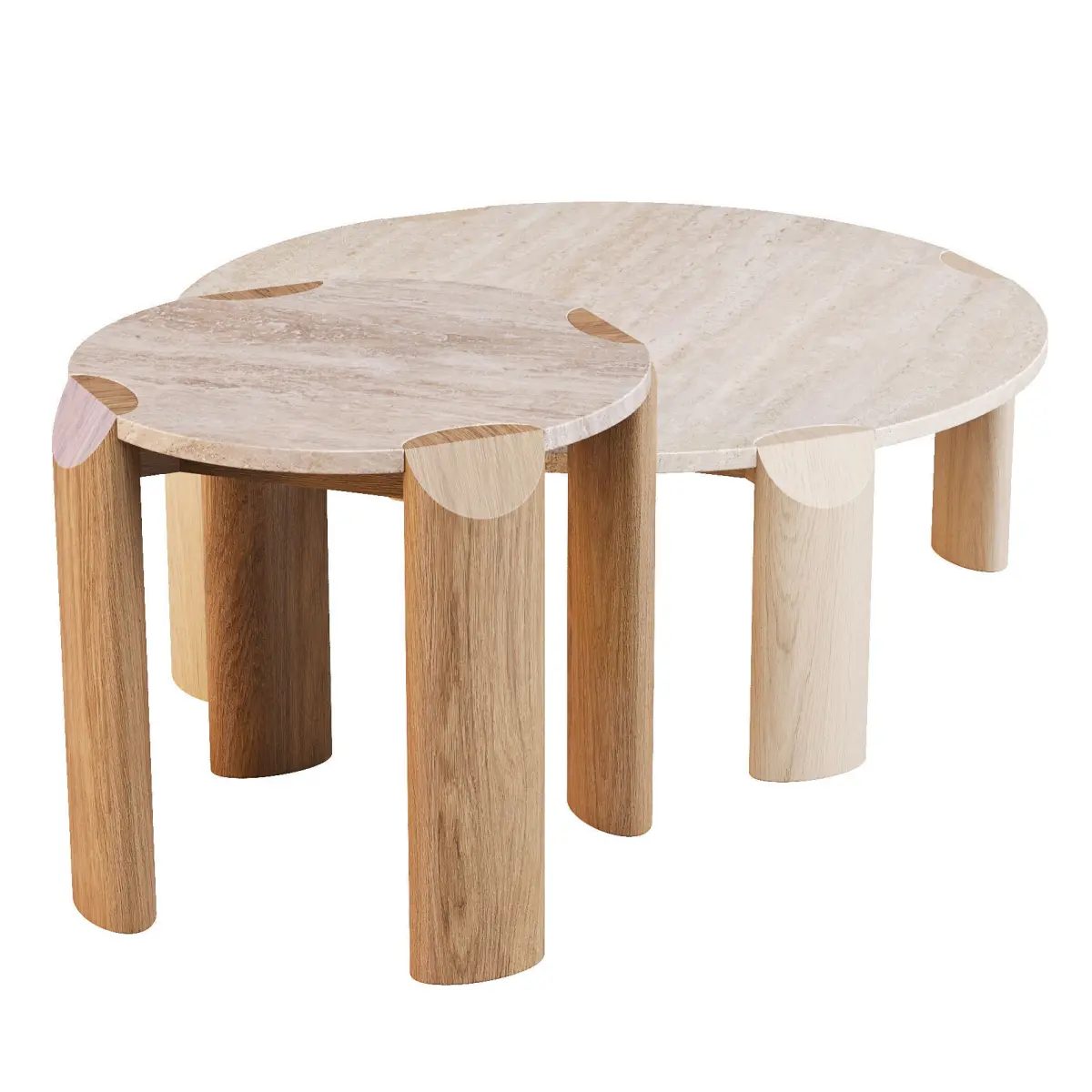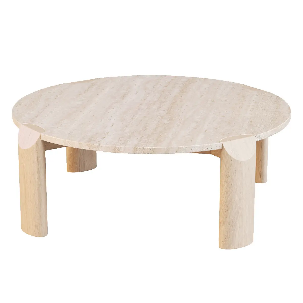 - The Willa Marble Coffee Table in Natural Travertine and Light Oak showcases a blend of contemporary style and versatility. Its elegant marble top combined with a light oak ellipse-shaped leg creates a stunning focal point in any living space, embodying modern design with its mixed materials and sophisticated aesthetic.