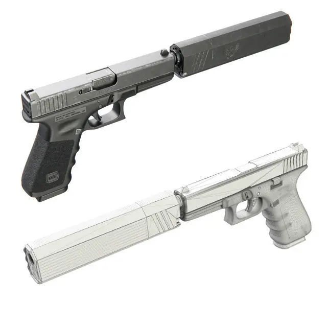 In the archive, a model with a silencer and withoutas well as three versions of plasticblack, sand, green