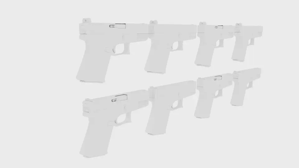 -5 Different Format Included: Blender(Deafult), 3ds, dae, fbx, obj-4 Different Style of Glock Included, Each With 2 Different Sight, So Got 8 Models in Separated File-Everything UV Unwrapped-Blender Scene and Node Included
