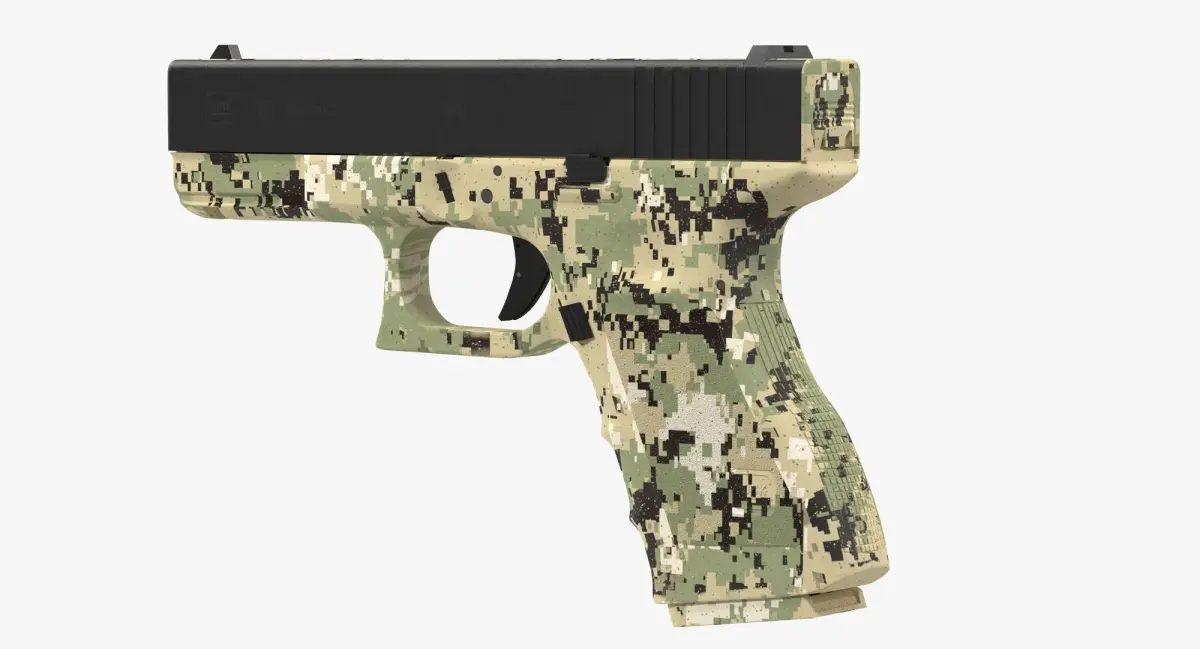 This Glock 19 Camouflage Green is a high quality, photo real model that will enhance detail and realism to any of your rendering projects. File units - cm. The model has a fully textured, detailed design that allows for close-up renders, and was originally modeled in 3ds Max 2017 and rendered with V-Ray.