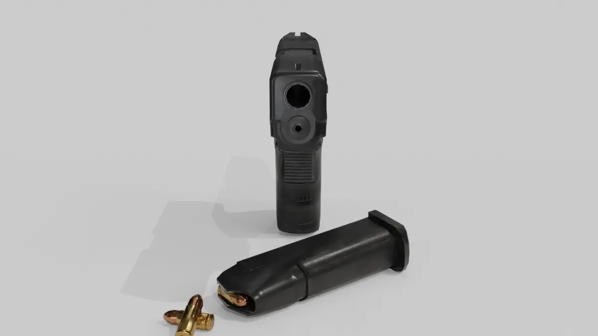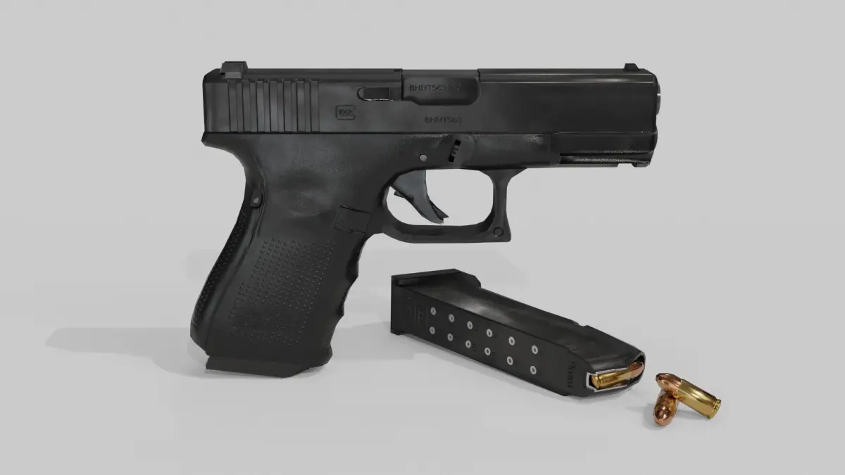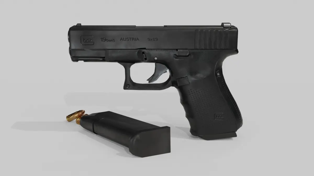 Textures:-Glock 19 4096x4096 texture, PBR(diffuse, metalness, roughnes, normal map)-magazine 2048x2048 texture, PBR(diffuse, metalness, roughnes, normal map )-9mm bullet 2048x2048 texture, PBR(diffuse, metalness, roughnes, normal map)