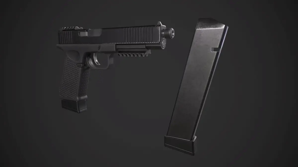 Game-ready Glock 21 with extended barrel asset, with PBR textures included in the files. This has 5306 polys (9617 tris) and 4999 vertices.