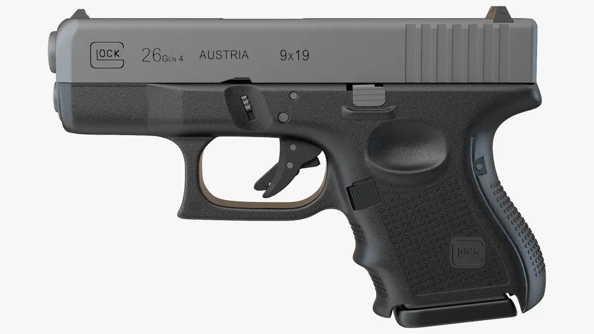 GLOCK 26 9mm is a 3d model of subcompact 9mm pistol designed for concealed carry and personal defense.