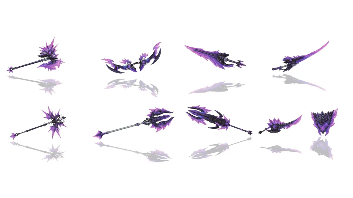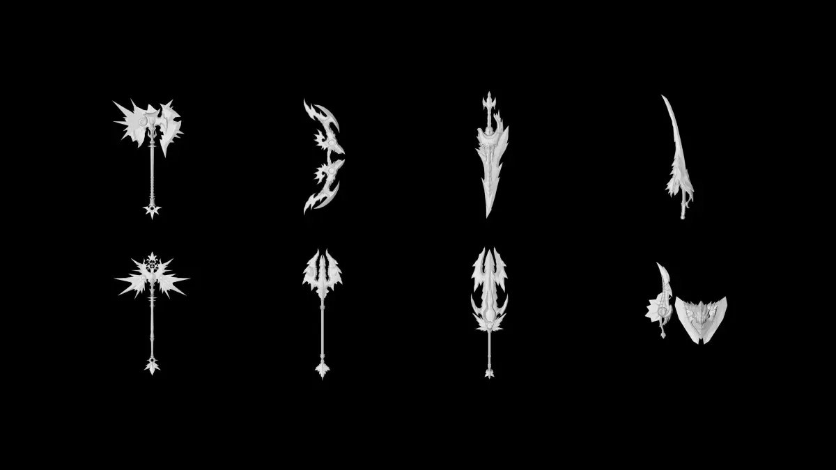 A pack of many weapons in a crystal/magic style.Each weapons comes with 3 textures.