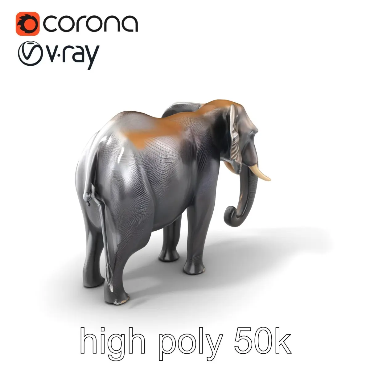 Each model has 3 levels of detail: low-poly, middle-poly, and high-poly, which allows for the use of this model in production rendering (such as 3ds Max, Maya, Cinema4D, Blender, Vray/Corona/Cycles and all other), game engines (Unity and Unreal compatible), and interactive presentations, providing a choice of detail based on the LOD System principle. This model is perfect for wildlife scenes, educational displays, and realistic animations showcasing elephants in an authentic setting. The model's textures are PBR, Diffuse, NormalMap, and reflection/roughness/metallic, which are suitable for any modern rendering engine. All models accurately unwrapped and have no overlapping UV.