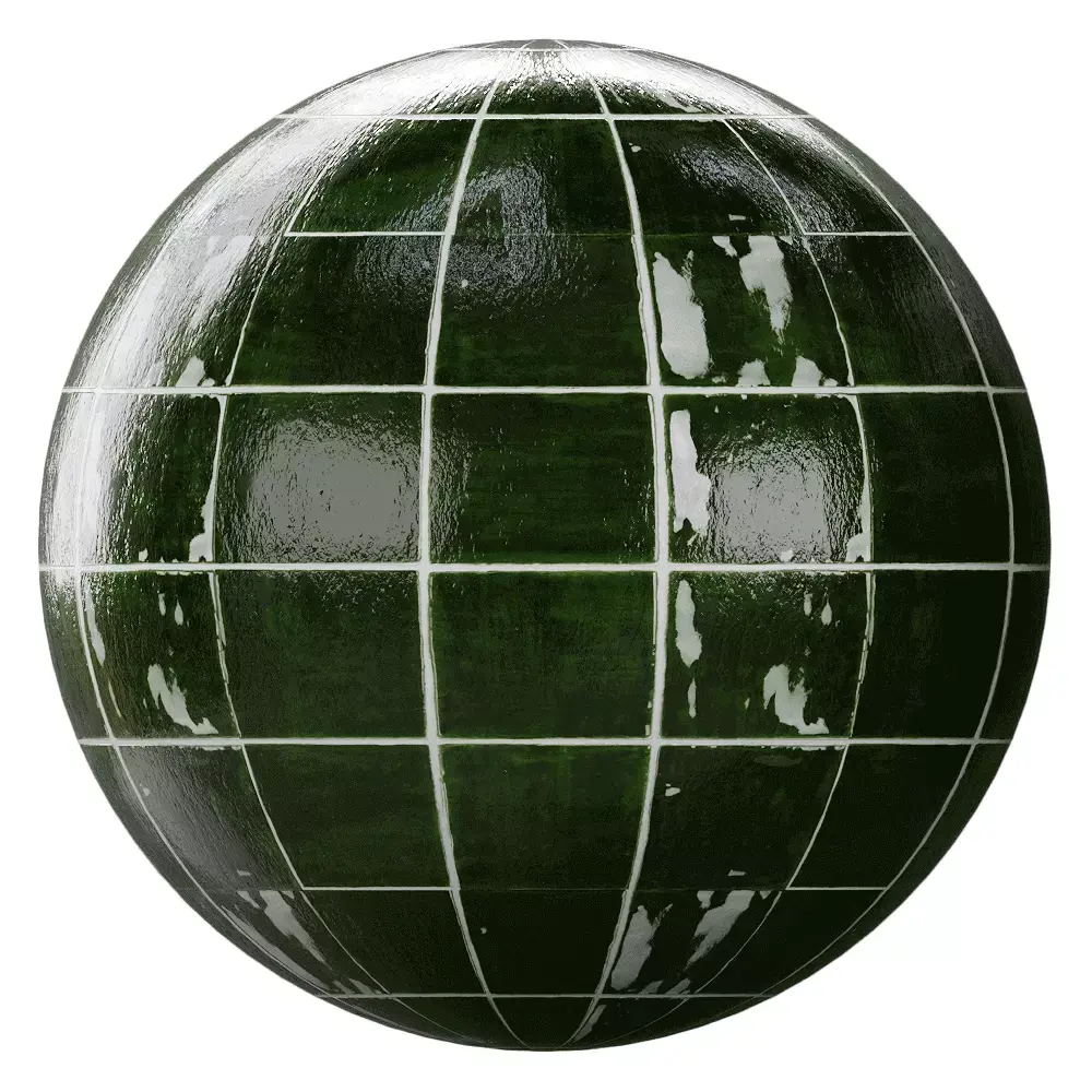 This 3D model presents a realistic glossy green ceramic wall tile, perfect for architectural visualization, indoor gardens, luxury bathrooms, boutique cafes, and stylish outdoor spaces.