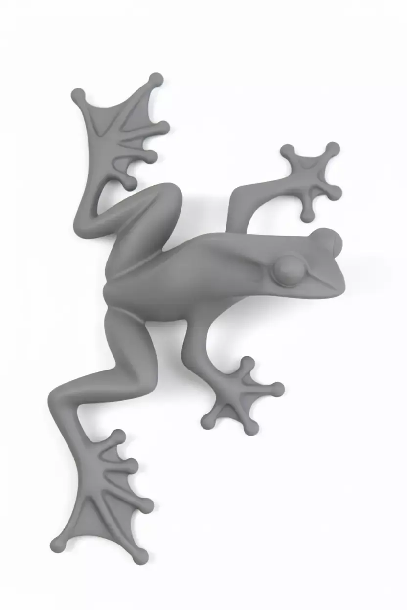 Highly detailed 3D model of a striking, artistic frog sculpture crafted in glossy metallic finish, designed for decorative wall art or interior design applications. The frog is depicted in a dynamic climbing pose, with limbs splayed outward and toes extended, each ending in small, spherical suction-like pads that add both realism and visual interest. The body features a rich gradient of deep purple to burgundy tones, with a highly reflective, polished surface that captures light beautifully, creating a luxurious and almost surreal appearance. The contrast between the vibrant body and the dark, almost black limbs enhances its dramatic silhouette, making it a captivating focal point.