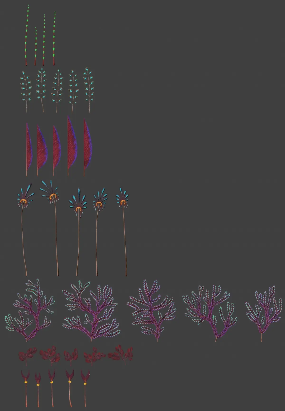Don't you hate it when a setting is depicting a different planet or a strange fantasy world, yet the plants look like they are coming from the forest nearby? This is part of a larger project: the herbs part will be around ten sets when done, each containing 7 different plant species.