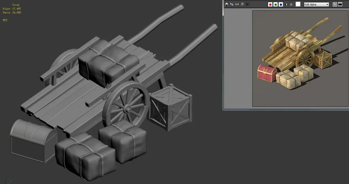 Gmax Ancient Transport Tool - Wooden Cart 3D model