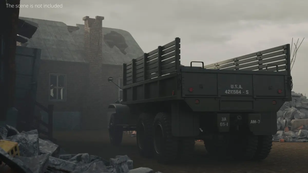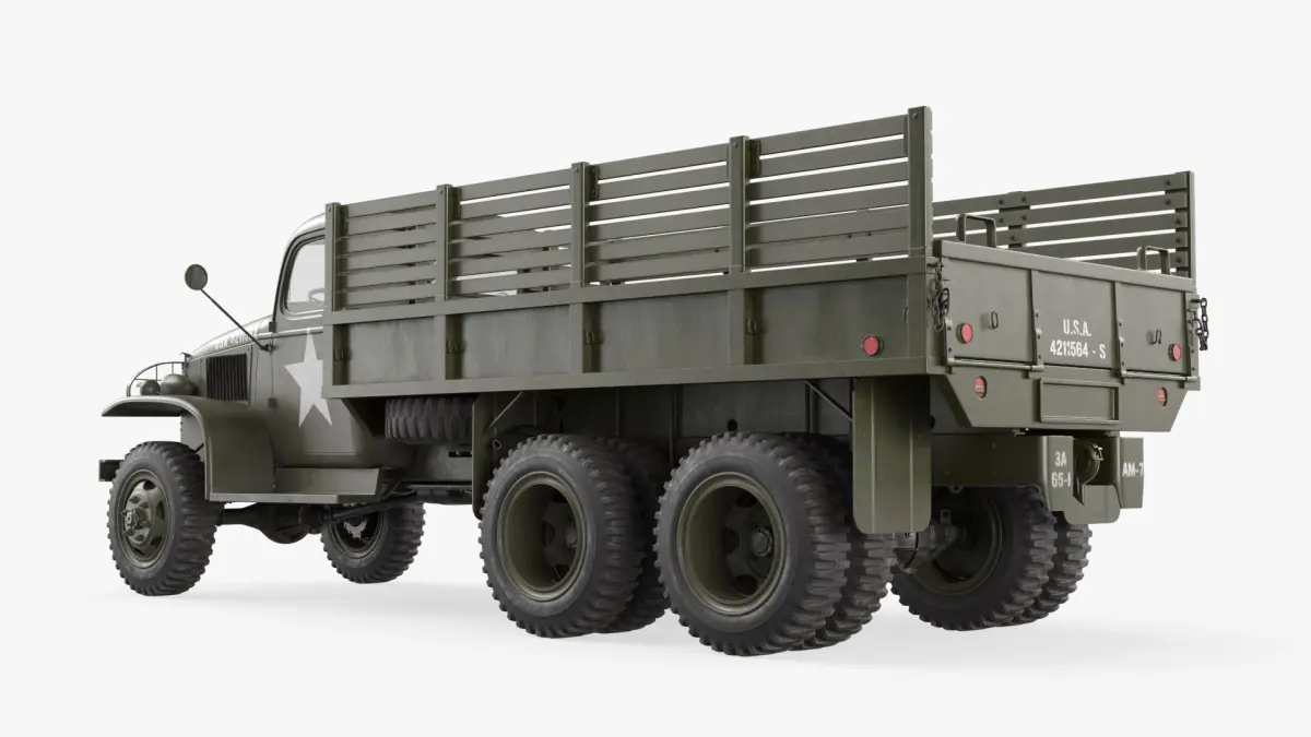 This model captures the rugged design and utilitarian features of the original truck, complete with realistic textures and details such as the prominent front grille, large tires, and military insignia. The truck's design reflects its historical significance and robust engineering, making it a nostalgic piece for history enthusiasts.