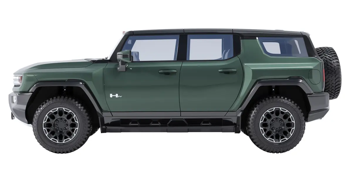 ELECTRIC FROM FIRST GLANCE HUMMER EVs' unmistakable design is infused with signature cues. The front lighting animation greets you while iconic H-illuminated taillamps remind followers that the revolution just passed them by.