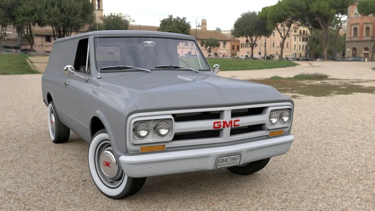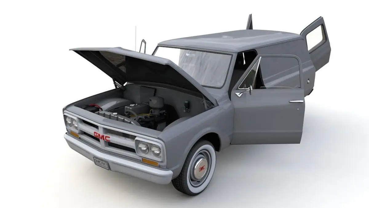 High detailed 3D model GMC PANEL TRUCK 1967, from inside and outside.