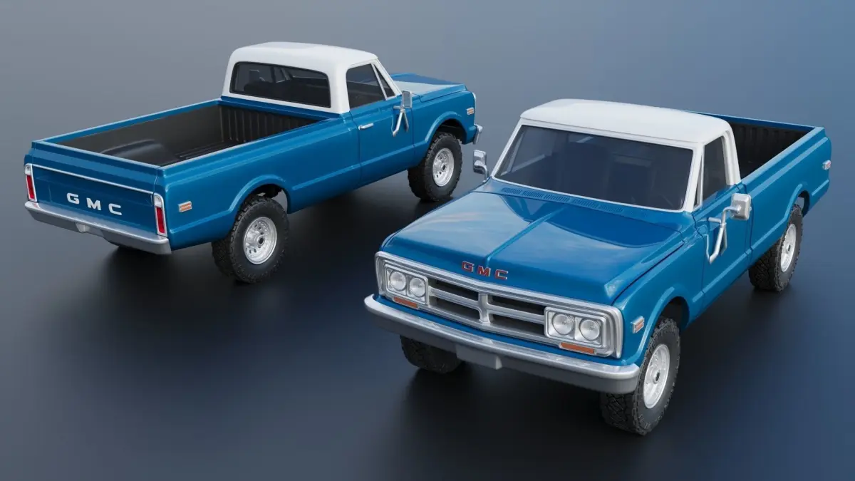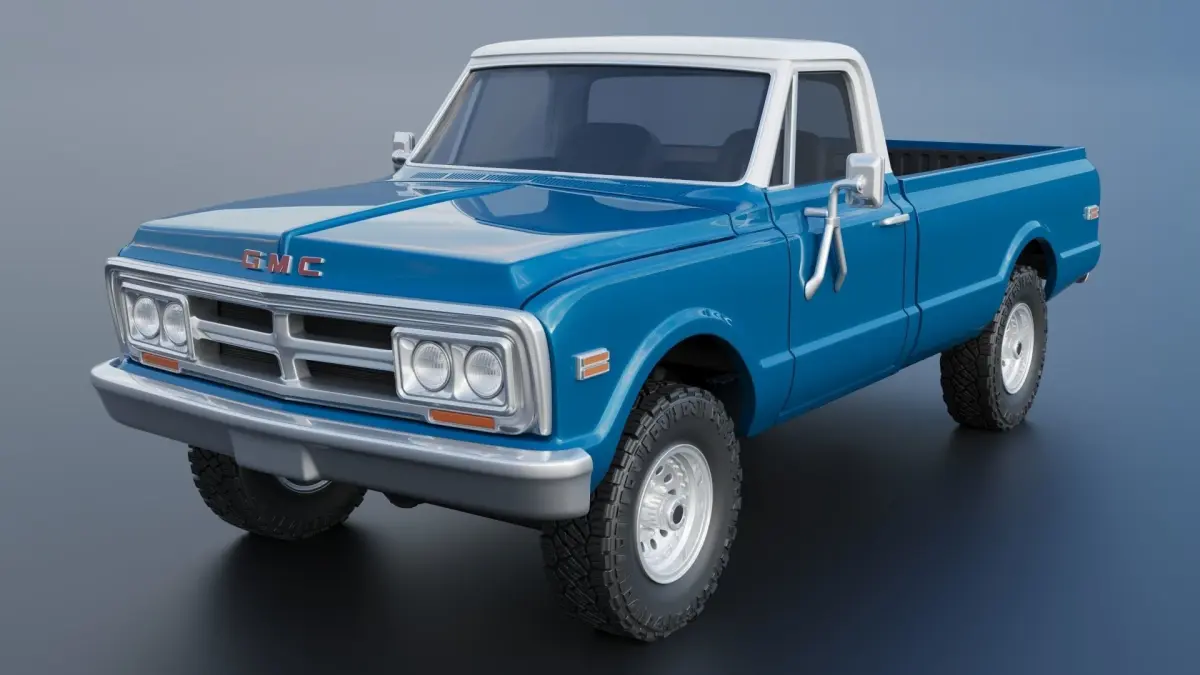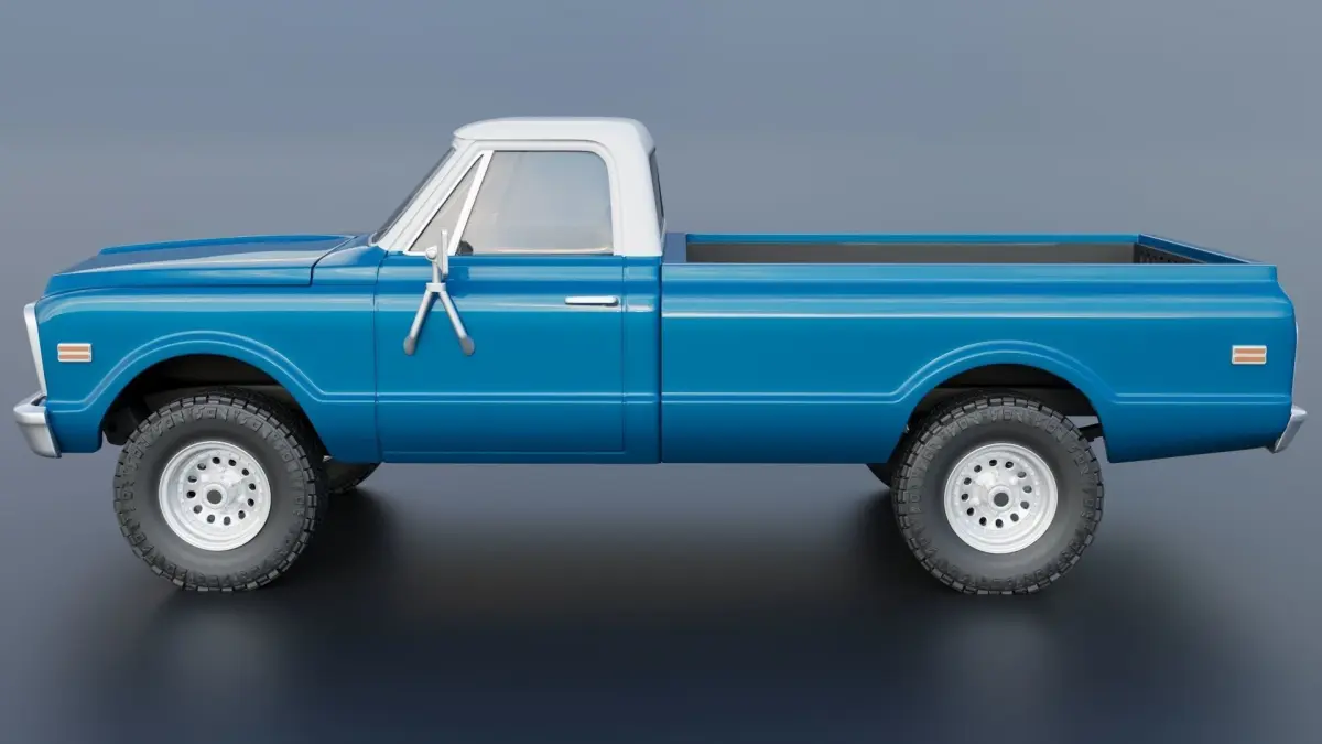 The model includes •Cab •Cab without hood •Hood •Grille •Cab divided into 2 parts •Box divided into 4 parts •Bumpers •Interior •Chassis •Engine •Wheels •Tires •Windows and glass for headlights and taillights