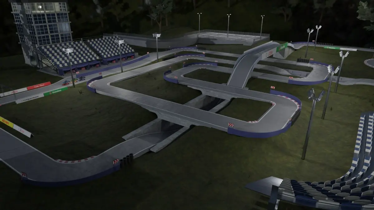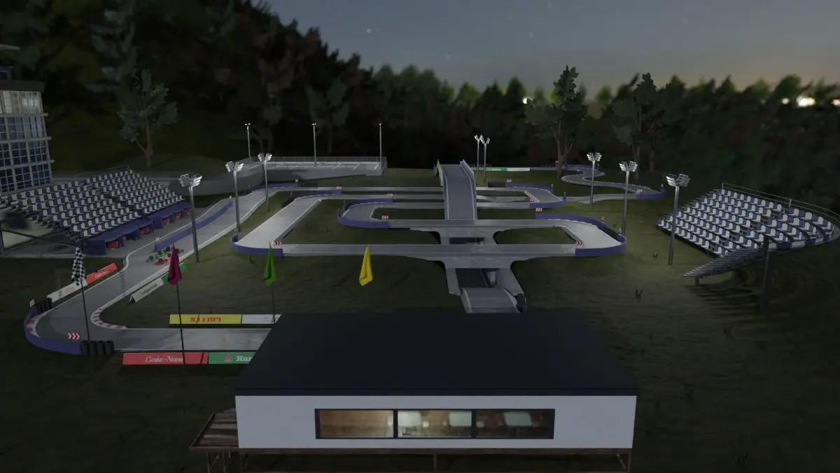 A race track made for go karts, with an amplitude variation in elevation changes and a full scenery.