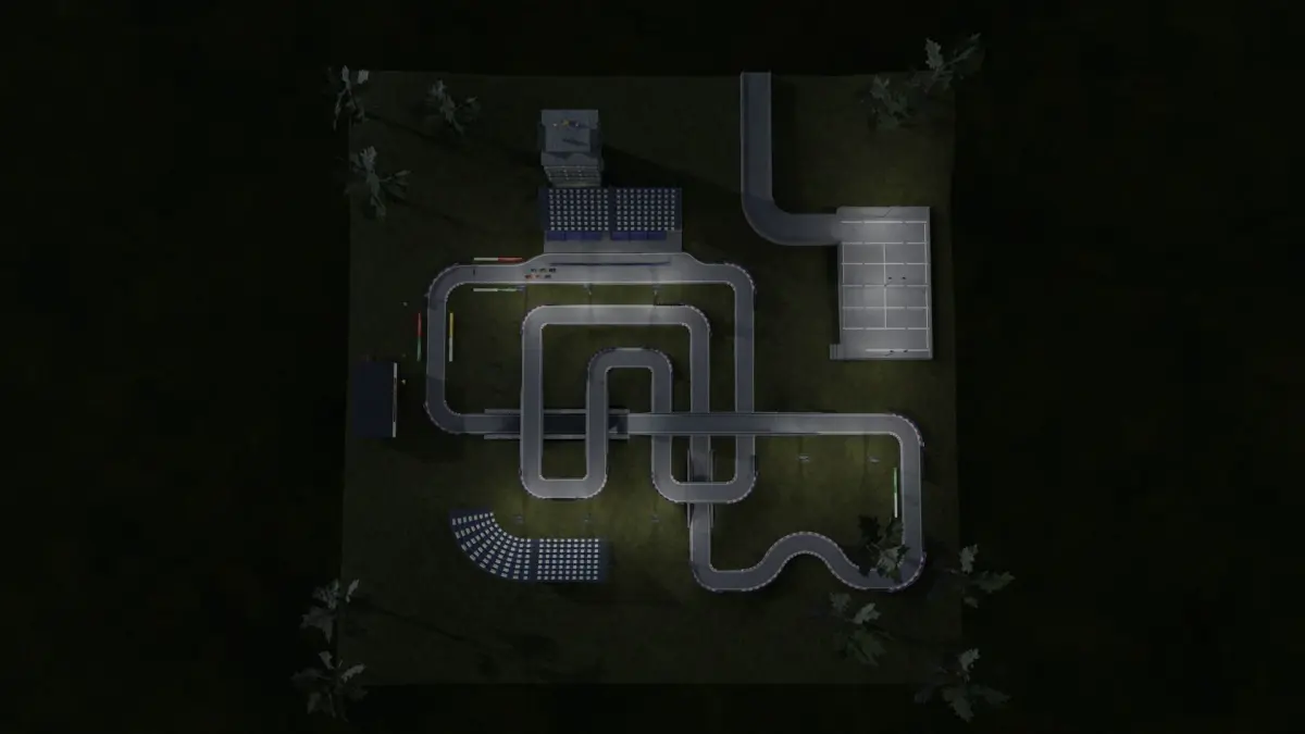 The track has two bridges, and surrounding the track there is, two different grades, a parking lot, a bar, and a commentator´s cabin.