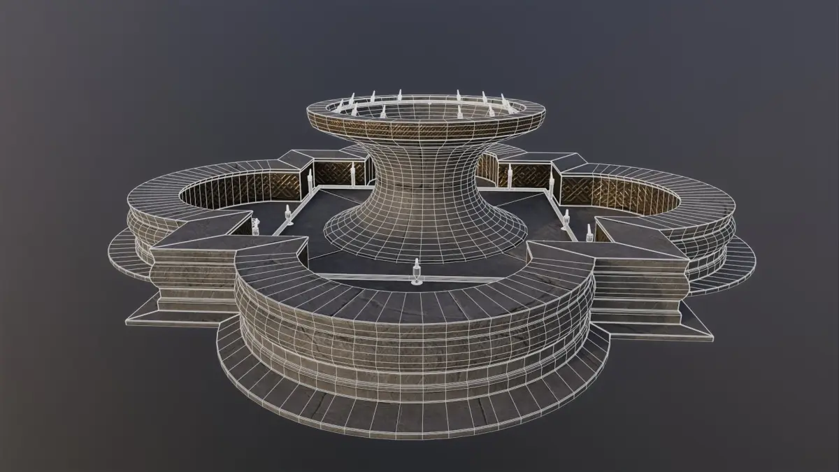 - 13728 triangles for fountain model, and 19916 triangles for pipes.