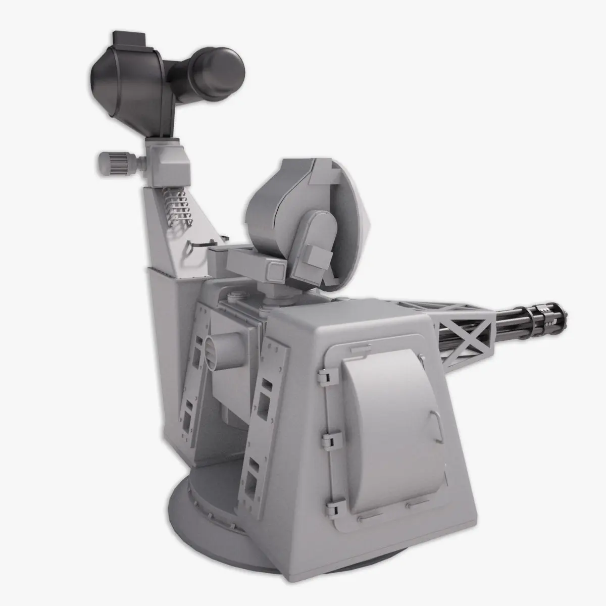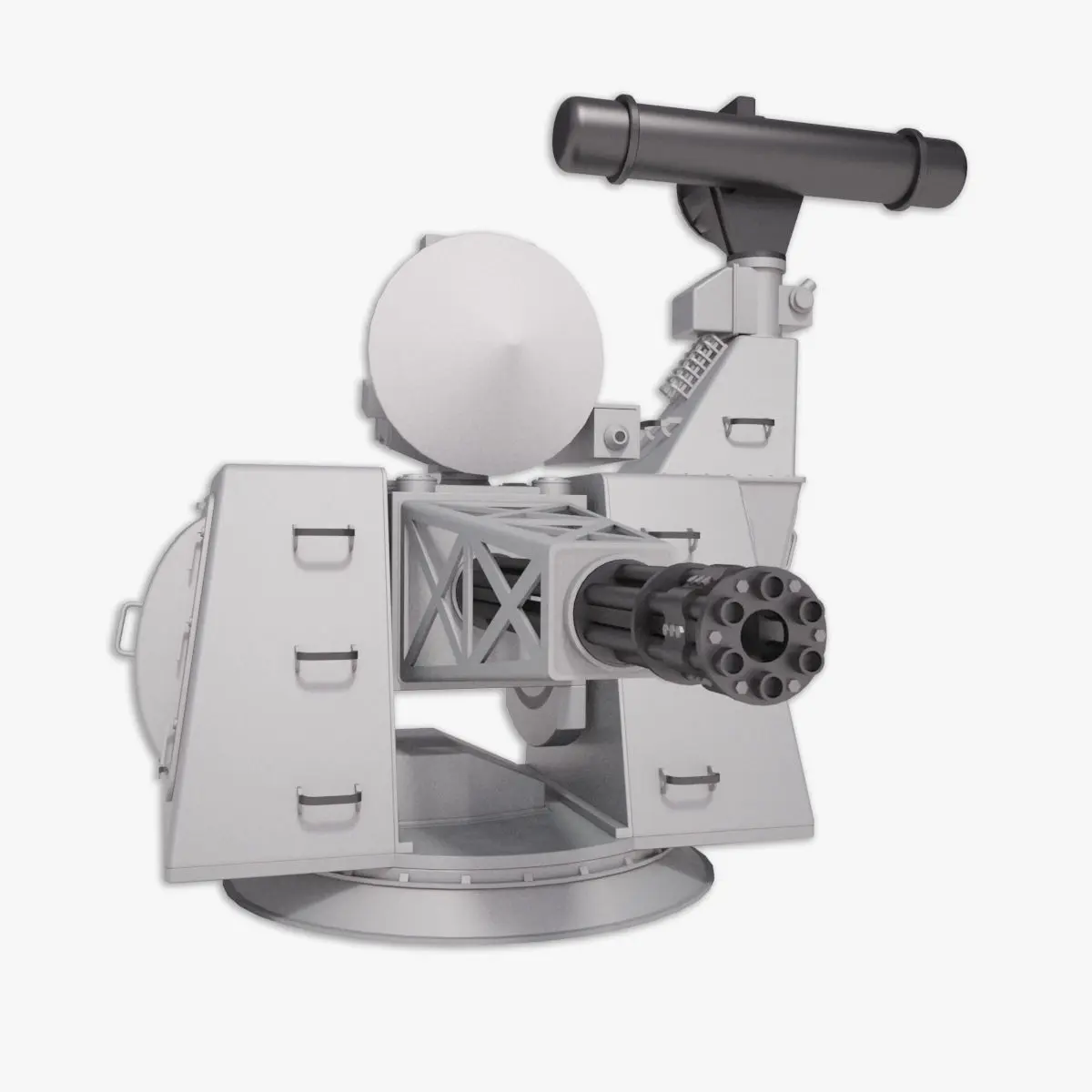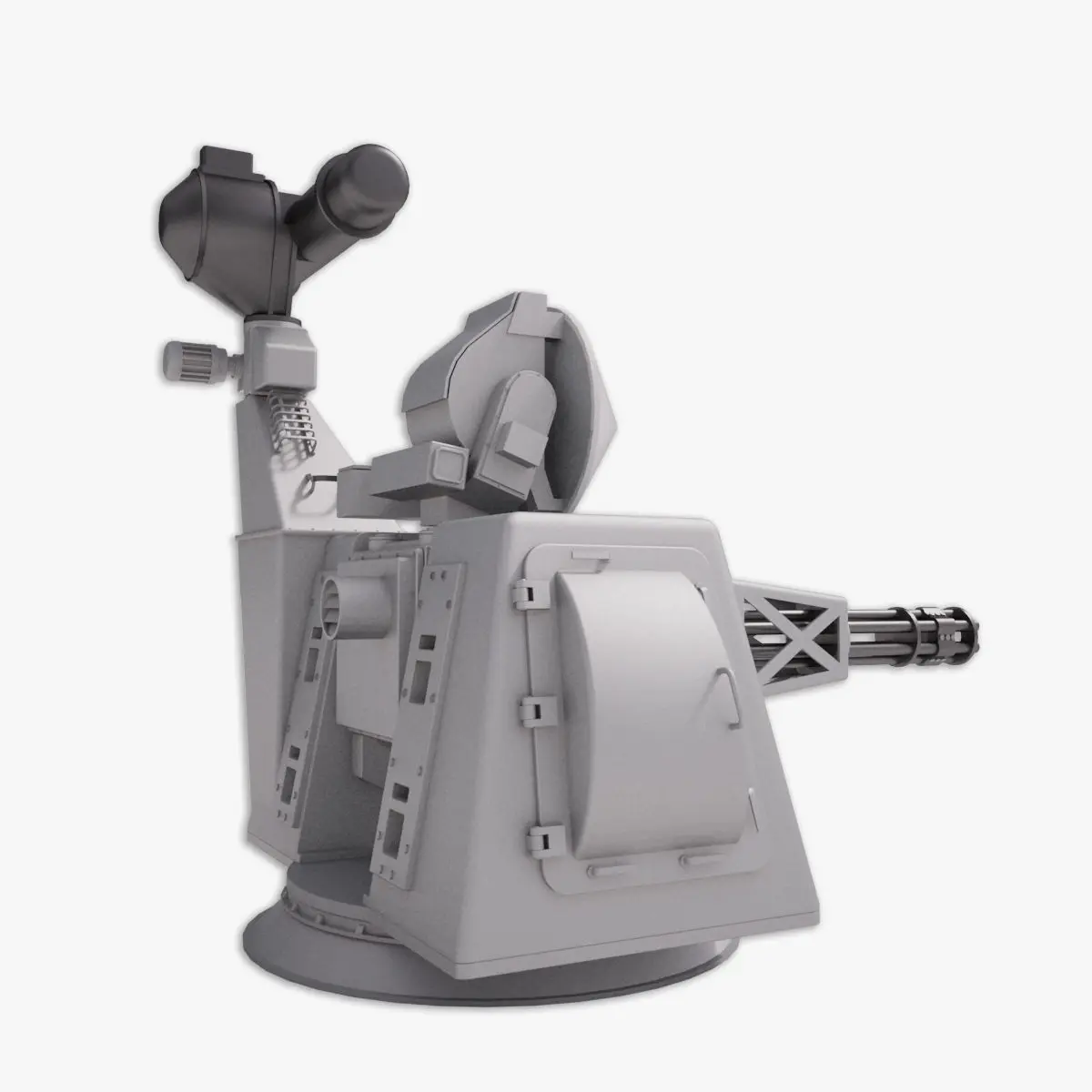 The model is divided in Base, turret, and gun for easy positioning. The pivots and hierarchy are setup correctly.
