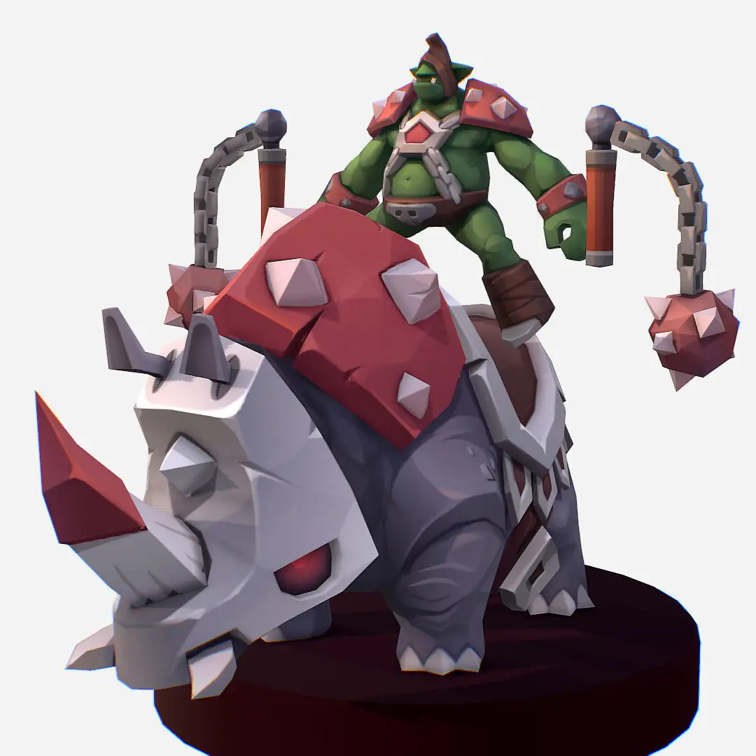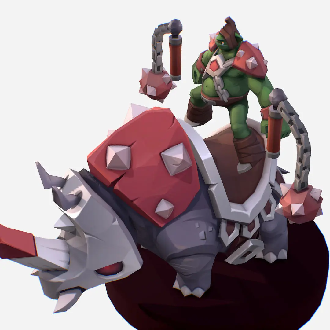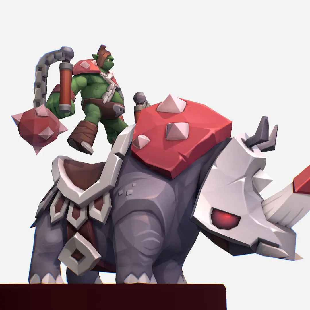 Goblin Rino Mount Handpaint Cartoon MMO Character Low-poly 3D model