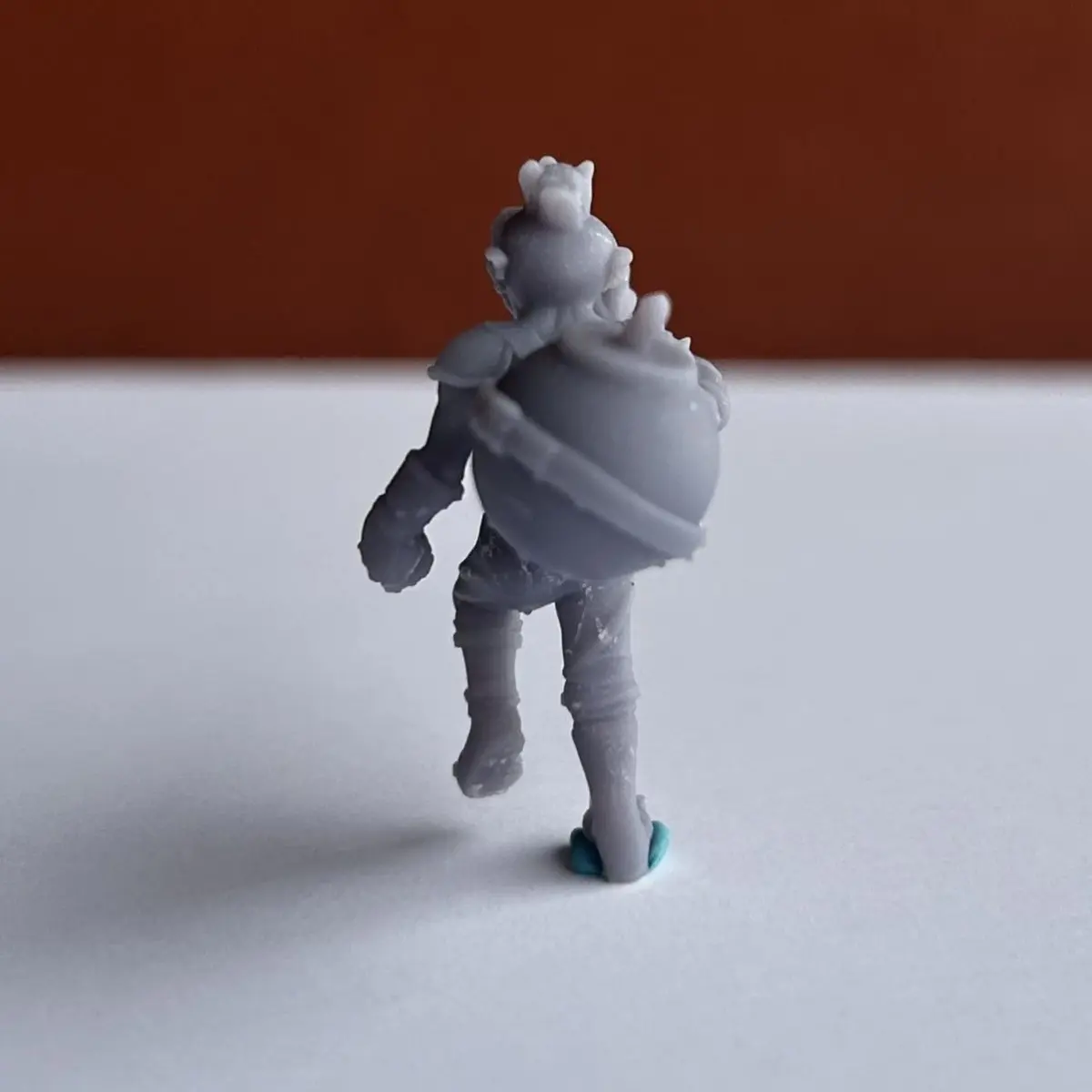 A goblin with a giant bomb on his back. He's here to demolish and make a statement. 30mm tall.