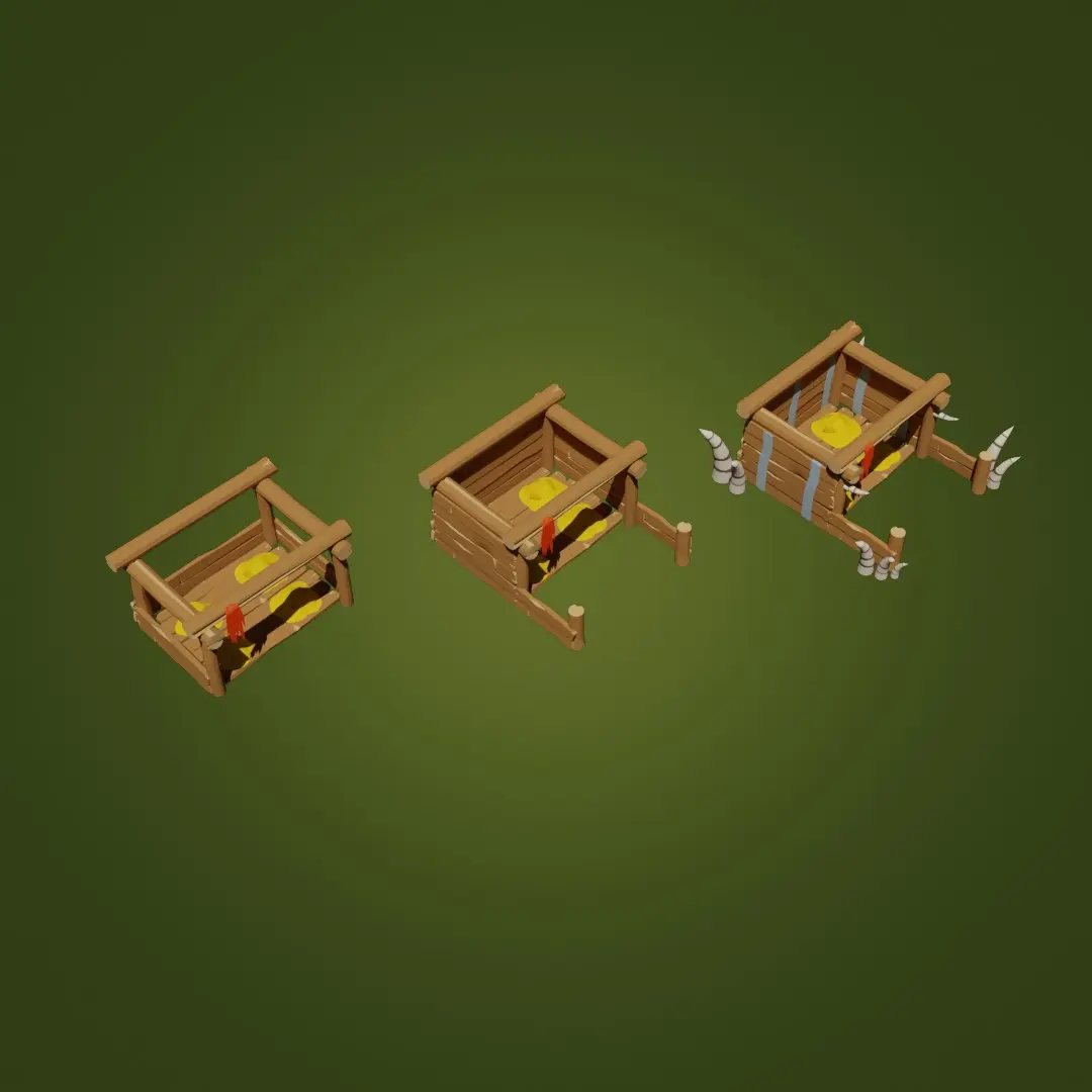 These are three upgrades for the goblins gold storage. Low poly, stylized, optimized, and ready to be exported to the game engineMade with Blender 3D soft More models you can see in my CGTrader account