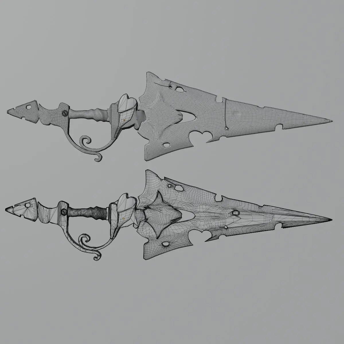There are two versions in each file: low-poly (its polygons are written in desription) and high-poly.Low-poly is the top one.Idea for the sword was taken from Kairuiz. The name for the sword is God Killer as despite rusty and damaged look, it contains tremendous power.