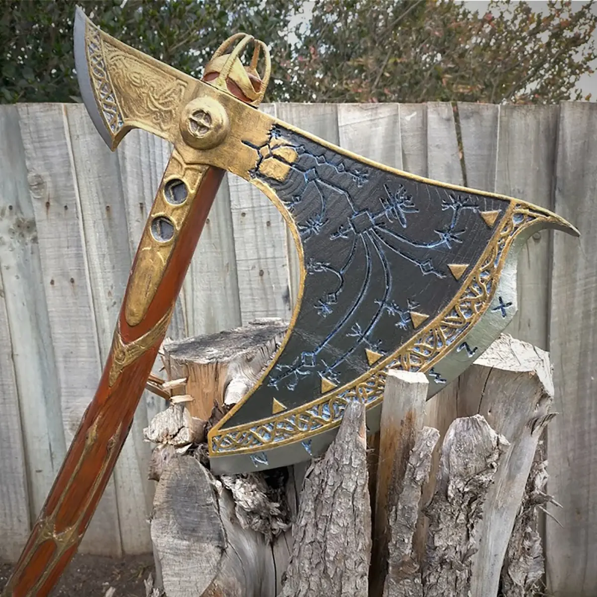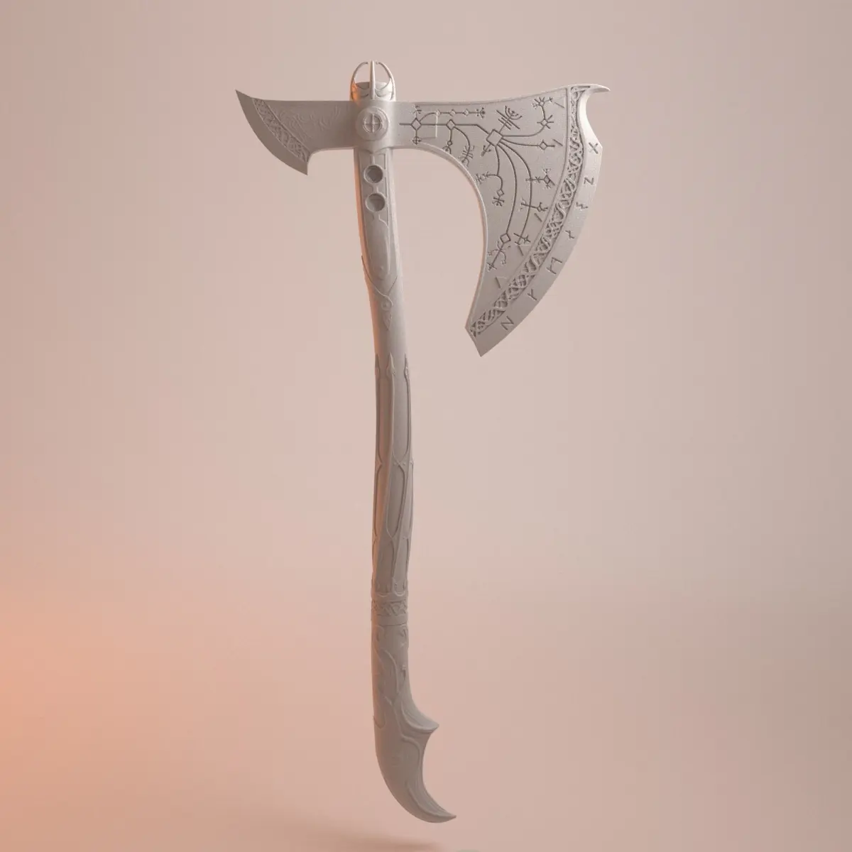 This is a 3D model of the Leviathan Axe from God of War (2018), perfect for your next 3D printing project or Kratos cosplay. It is the fully upgraded version of the axe which contains extra decals and gold trim.