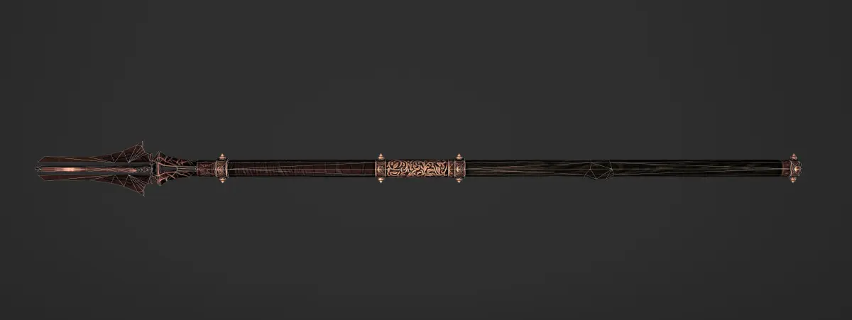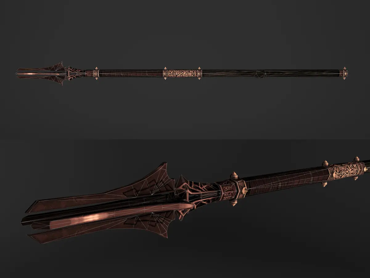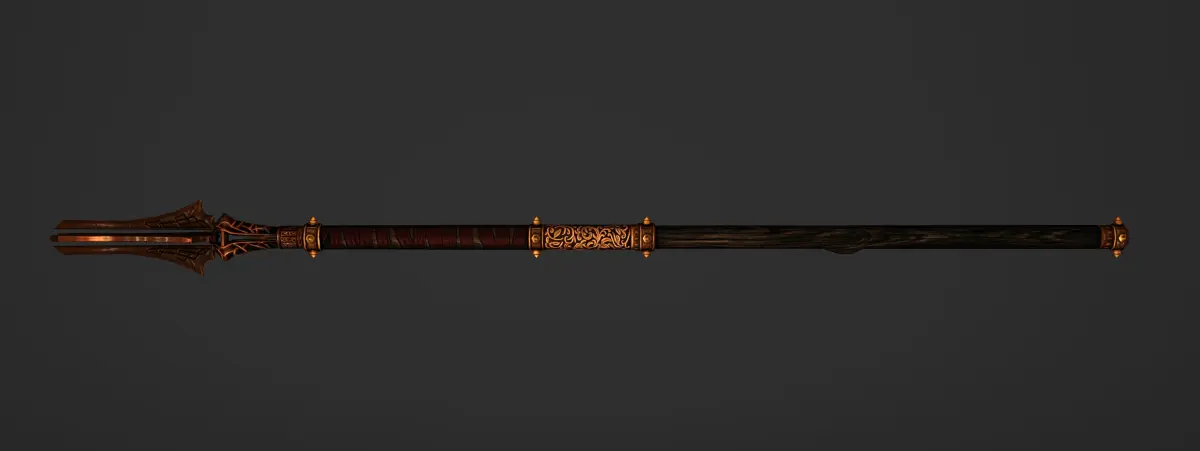 This is a model of a golden staff with wooden handle. It has baked material map and is low-poly suitable for games.
