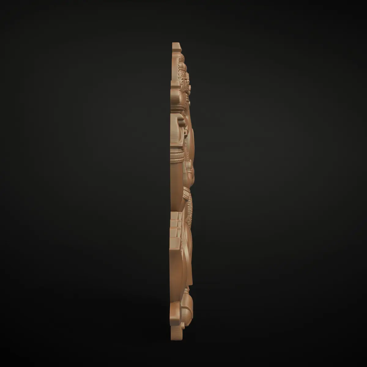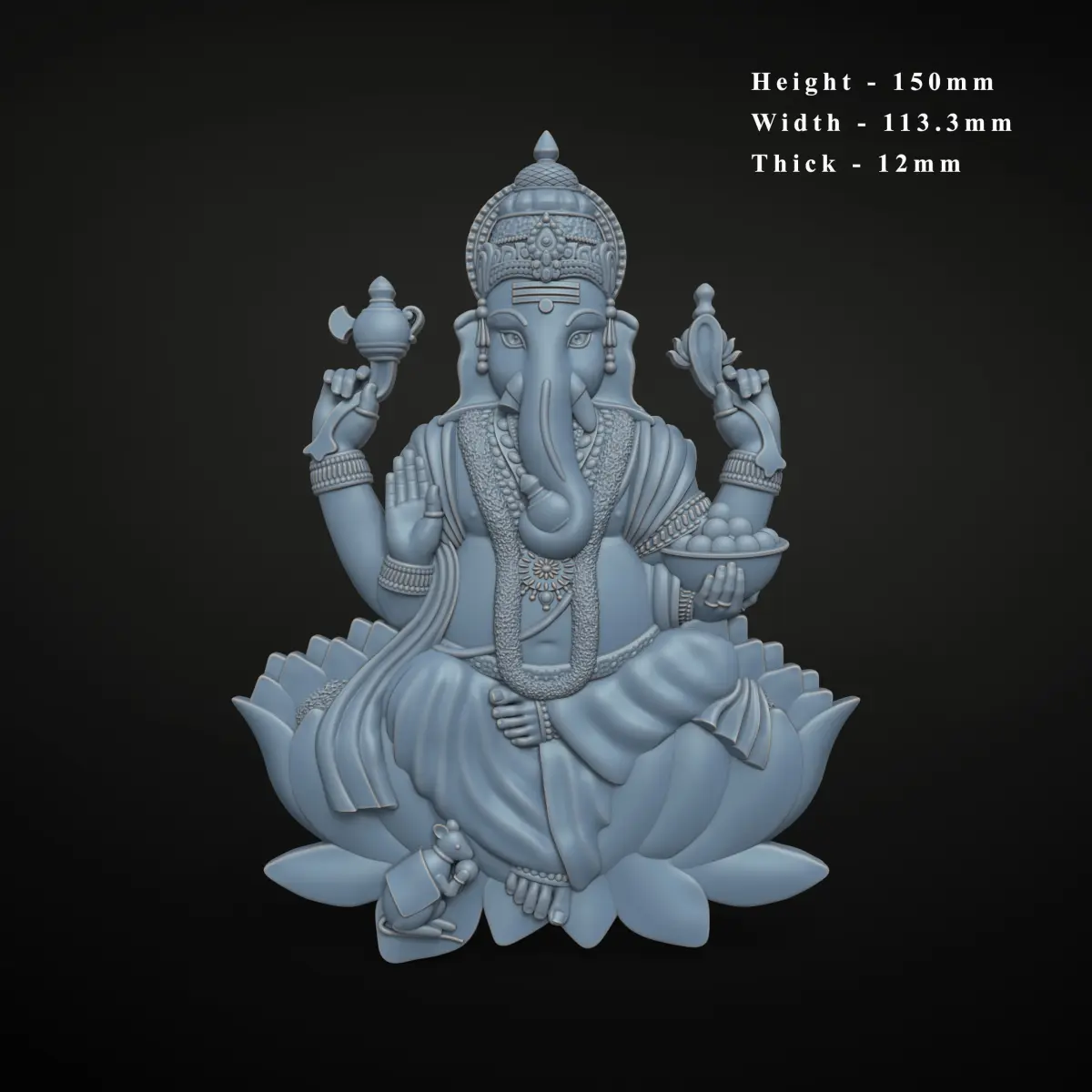 This is a relief model of Lord Ganesha for 3D printing and CNC milling purposes. It is a watertight solid model created using the Zbrush software and converted to different formats, including STL, OBJ, and FBX.