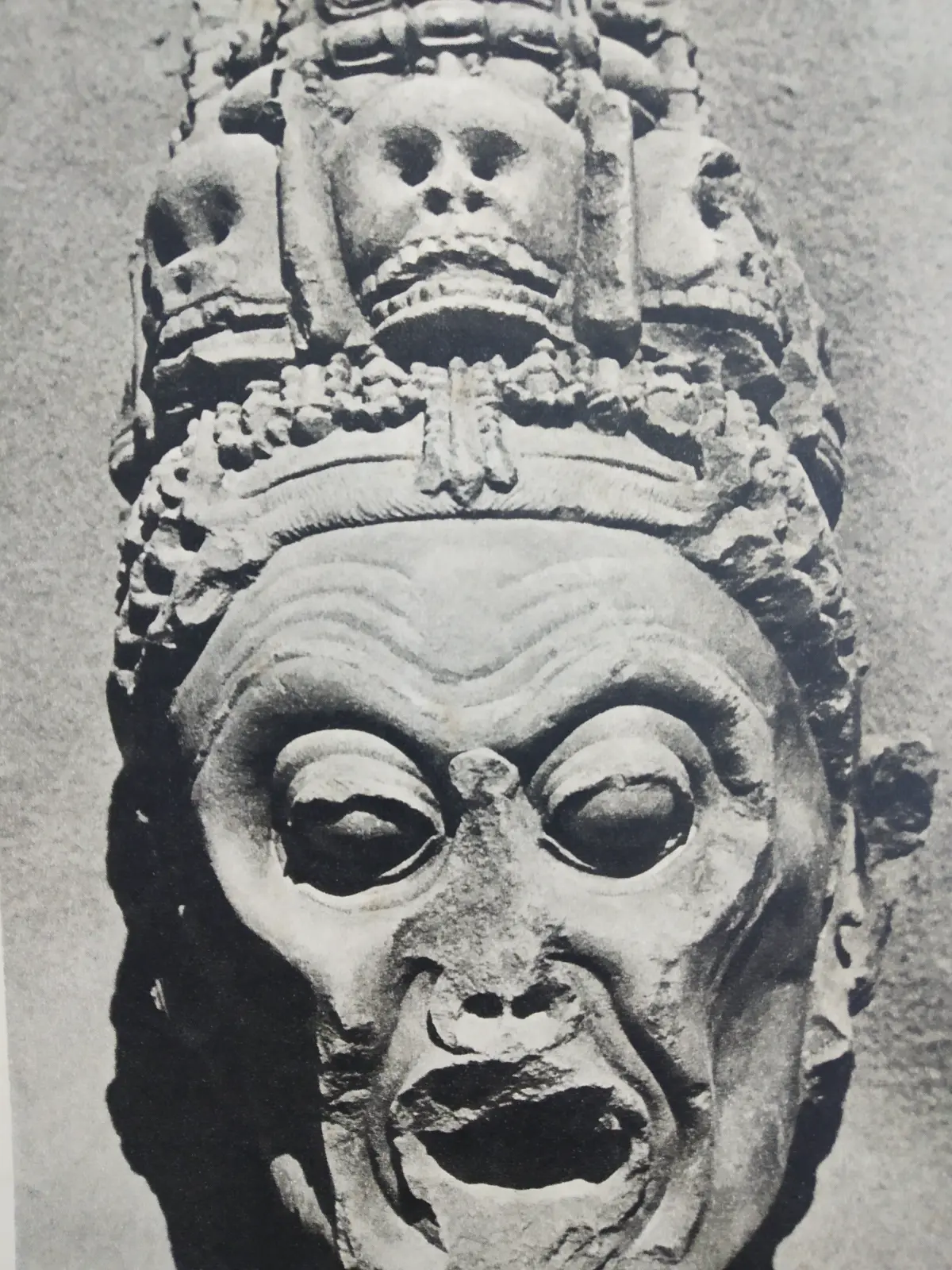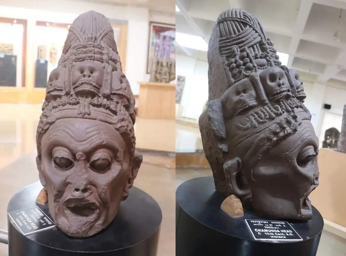 This Goddess Chamunda head was found in Vidisha, India and was originally sculpted in 10th Century AD.