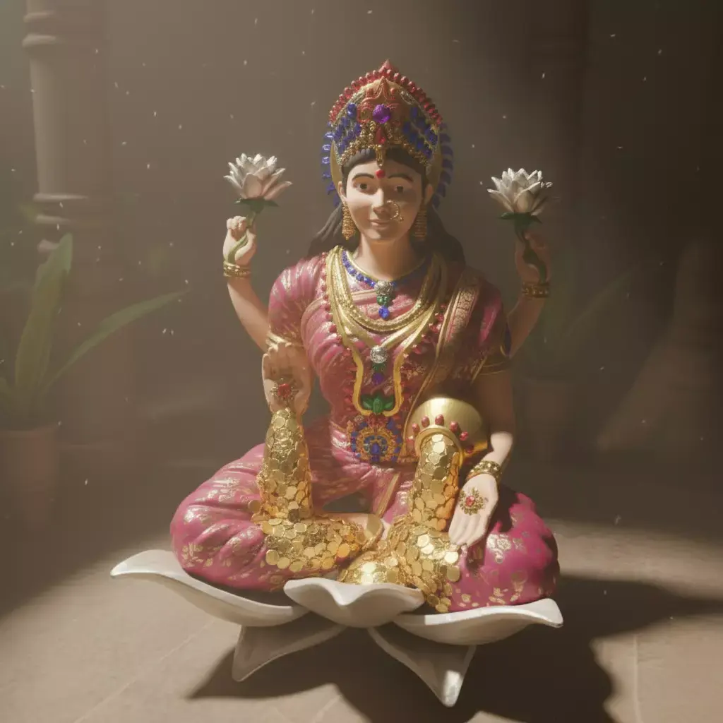High-Detail Goddess Lakshmi 3D Model | Laxmi Idol for Jewelry, Pendants & 3D Printing | STL/OBJ/FBX