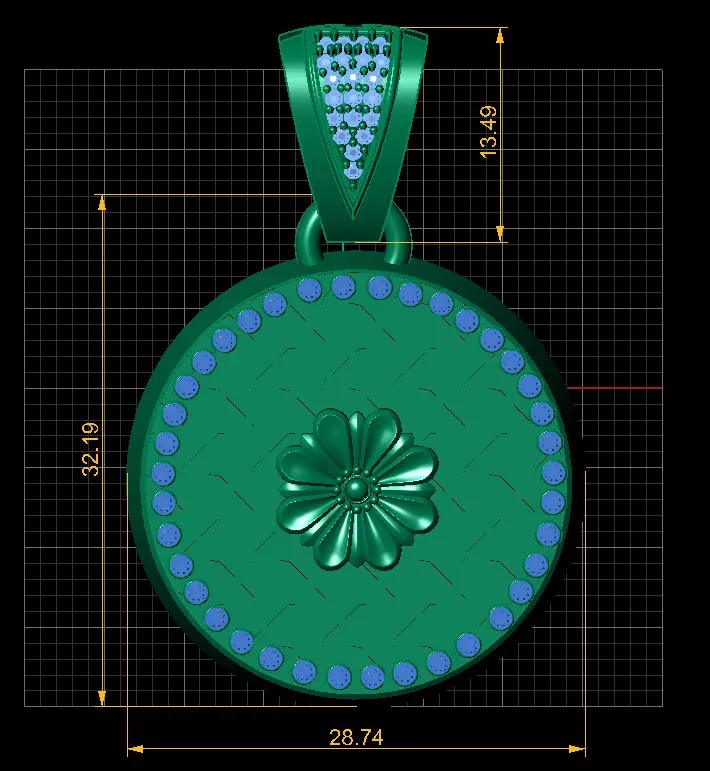 This exquisite round pendant is a true testament to artistic craftsmanship and elegance. At the center, a beautifully sculpted, high-relief flower blooms with delicate detailing, creating a stunning focal point. The background features a patterned surface with a maze-like texture, adding depth and visual intrigue. Encircling the design is a rim adorned with deep red gemstones, enhancing the pendant’s regal appeal. The finely set pavé diamonds on the bale offer an extra touch of luxury. This pendant effortlessly blends tradition with modern artistry, perfect for statement wear or meaningful gifting.