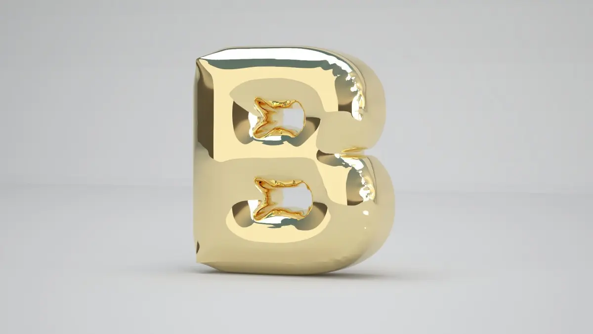 Realistic 3D Model OF Balloon B Alphabet Gold