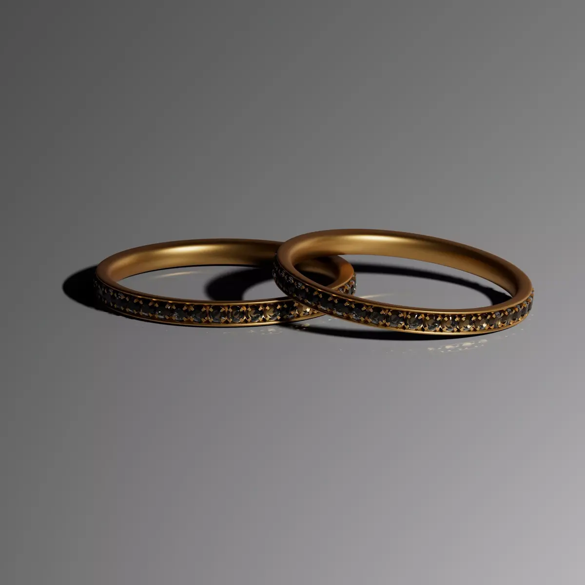 This 3D model features a beautifully crafted pair of gold bangles, intricately studded with diamonds to showcase luxury and tradition. The bangles exhibit a seamless design with precise stone placements, offering a high degree of realism and elegance for jewelry visualization. Ideal for animation, rendering, virtual jewelry try-ons, and 3D printing, this asset is well-suited for both creative presentations and prototyping for manufacturing. Compatible with popular formats like OBJ, FBX, STL, and ready for customization in any jewelry project. The polished surface highlights the rich gold glow, making it a perfect addition to any jewelry designer’s 3D library