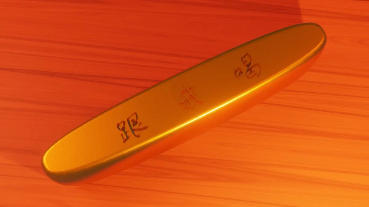 Gold bar with Chinese Scripts engraved and embossed on body . Ready for game assets. Attached images were made from Eevee render engine.