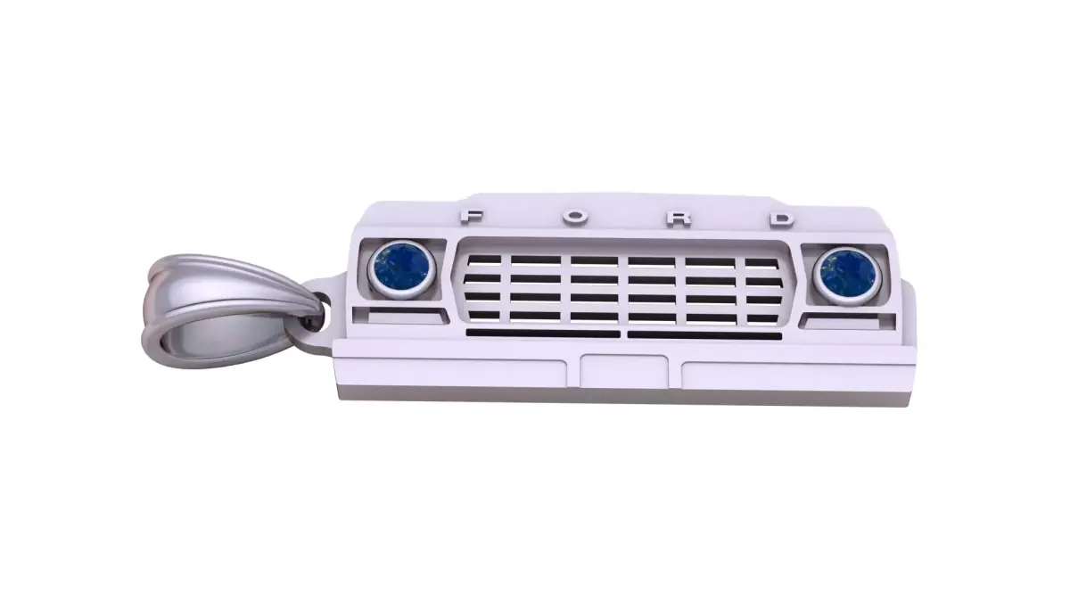 Celebrate a legend of the road with this meticulously detailed Gold Classic Ford Grille Pendant. This 3D-rendered masterpiece captures the iconic front-end design of a vintage truck, featuring a precision-cut rectangular grille and a smooth top bar embossed with the famous FORD block lettering.