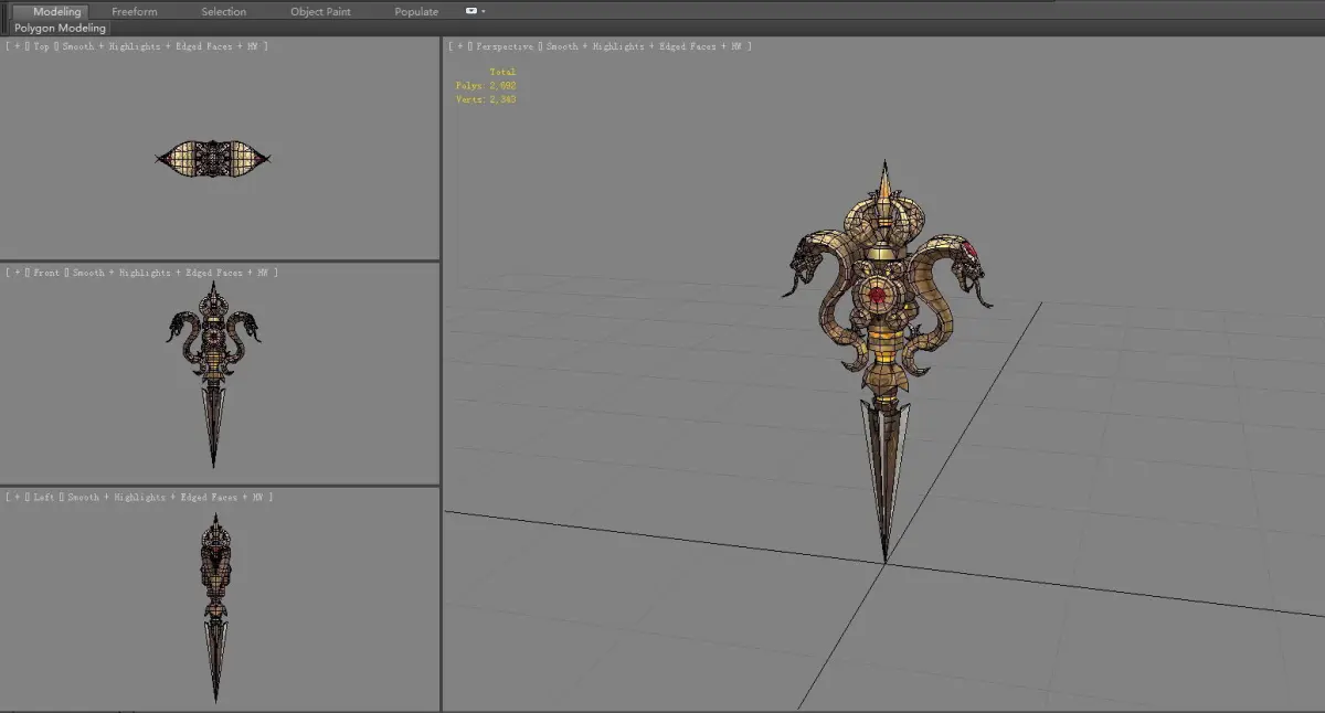 HomeCatalogGold Cobra Dagger - magic weapon Low-poly 3D model