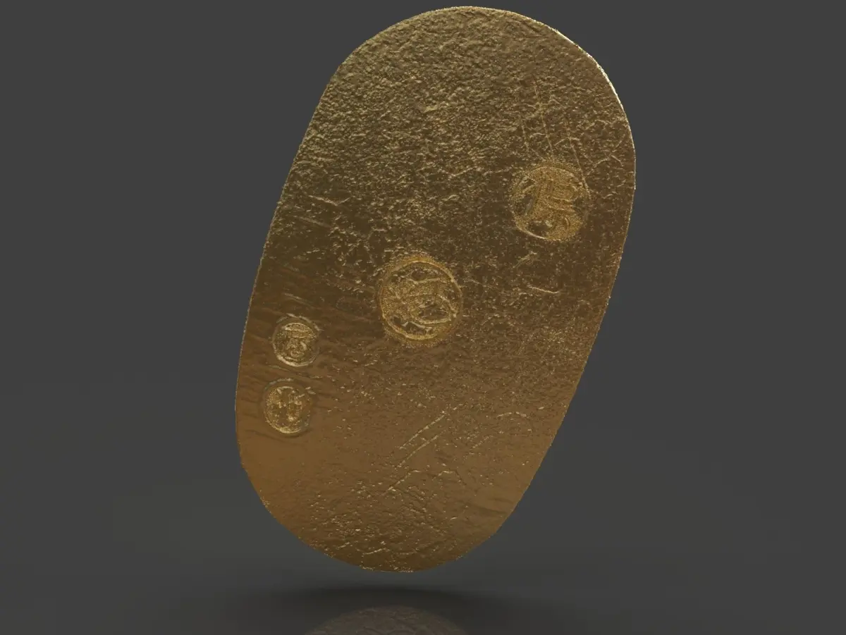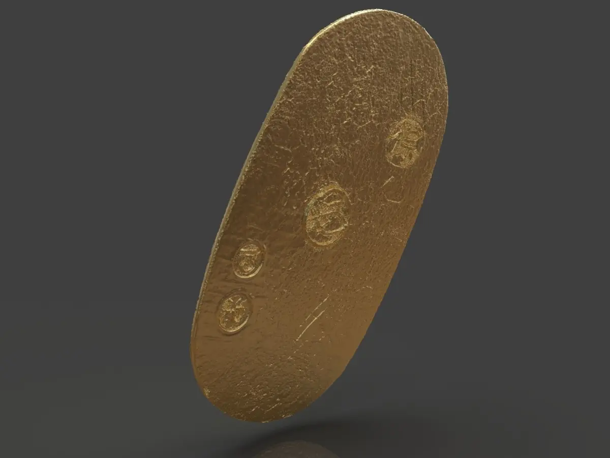 A Gold Coin Koban an old Japanese Coin made with ZBrush and ready for 3D Print I included the OBJ, STL, and ZBrush Tool if you need 3D Game Assets or STL files I, can do commission works.