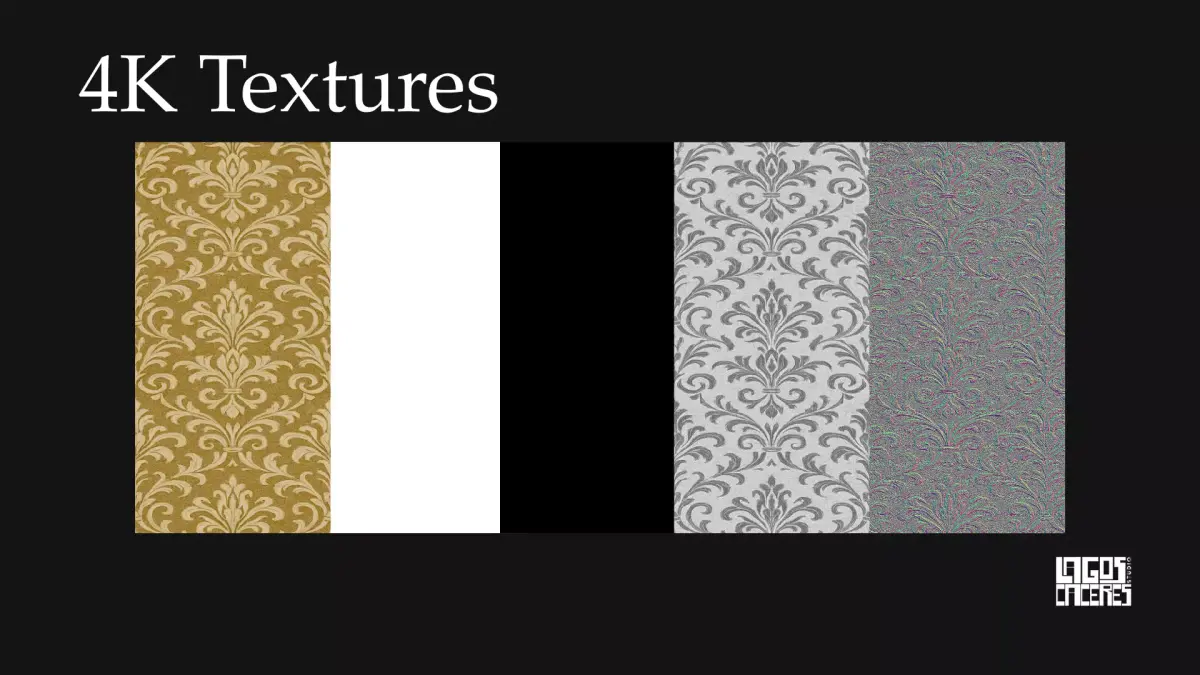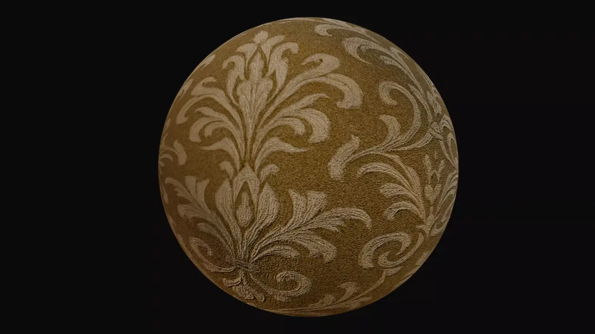 PBR-ready luxury fabric material featuring a timeless Damask/Brocade pattern in rich Gold and Bronze tones. This versatile textile is designed for professional architectural visualization and high-end game development.The material is perfectly seamless and tileable, making it ideal for large surfaces like carpeting, drapes, or expansive upholstery without visible repetition.